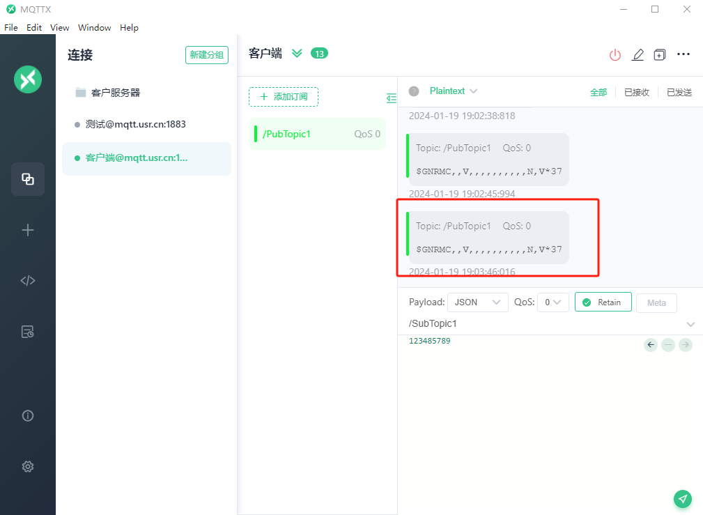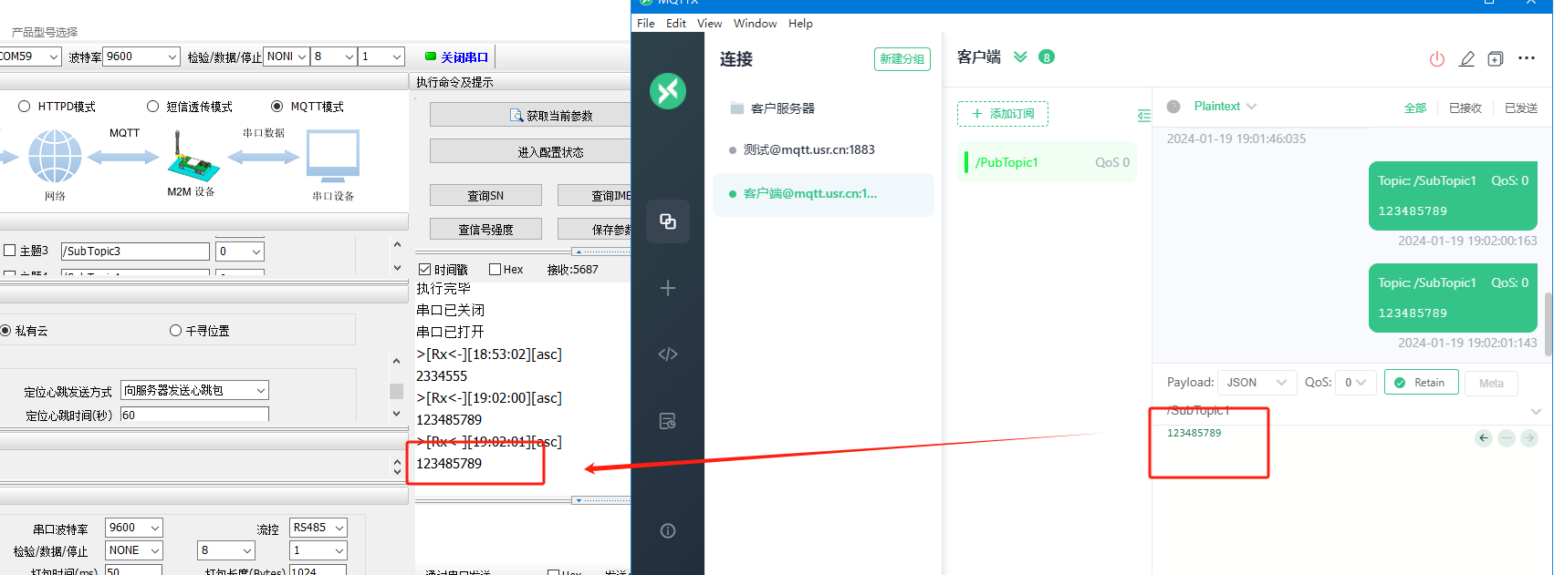 可以看到可以通過mqtt軟件下發(fā)數(shù)據(jù)到780s的串口