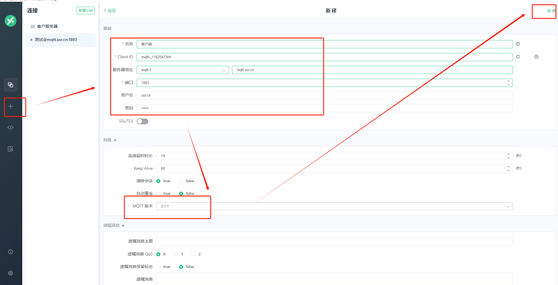 連接mqtt服務(wù)器的參數(shù),點(diǎn)連接