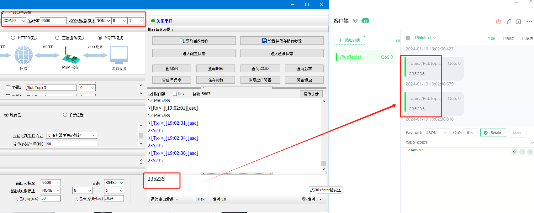 把780s的串口用串口轉(zhuǎn)usb接電腦,根據(jù)串口參數(shù)打開,MQTT軟件填上780s的發(fā)布主題和訂閱主題