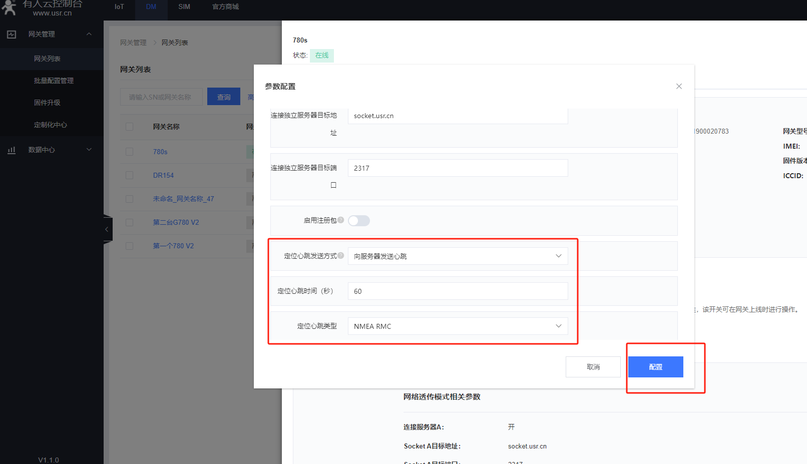 配置心跳發(fā)送方式、時(shí)間、類型,然后點(diǎn)配置生效