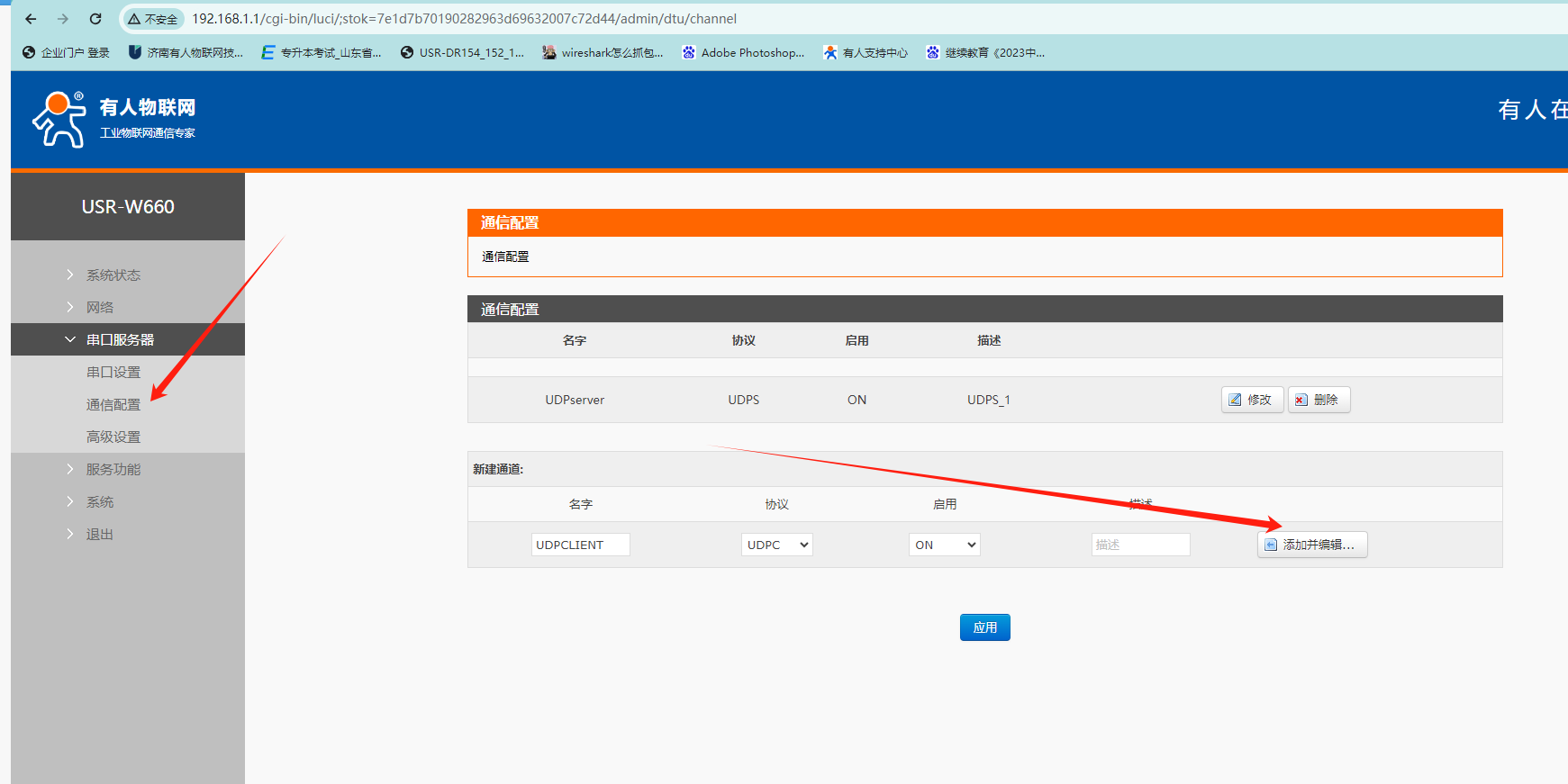 4、W660設(shè)置為UDP SERVER.設(shè)置方法如下,點擊添加并編輯