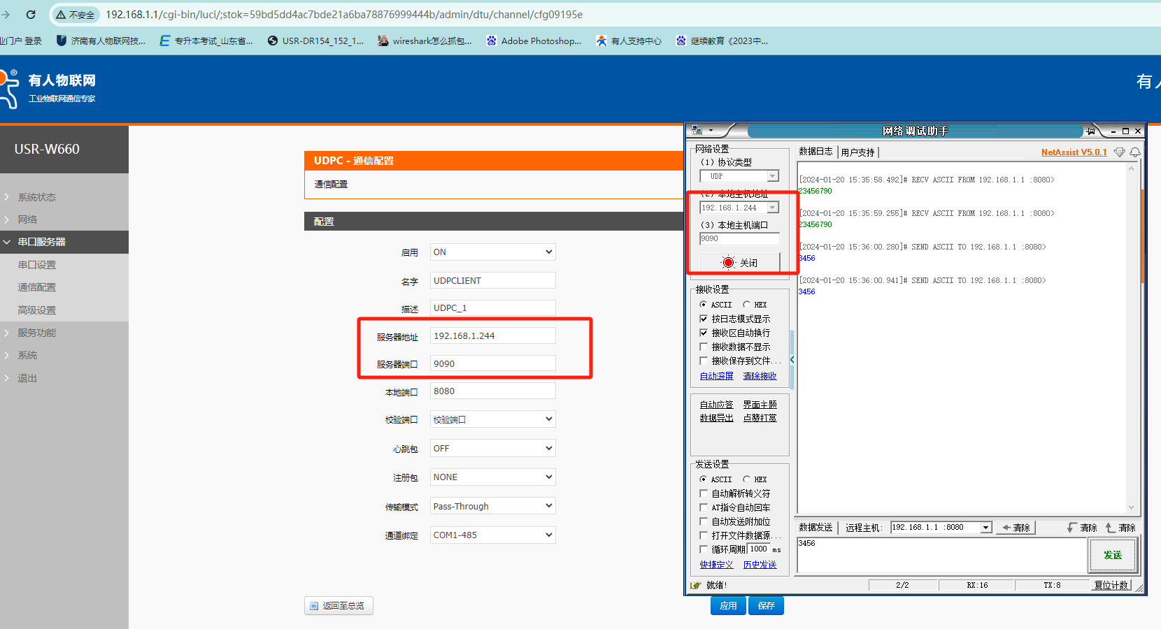 1.W660接上WiFi天線,電腦連接上wifi,232轉(zhuǎn)USB調(diào)試線或485轉(zhuǎn)USB調(diào)試線接到電腦。 并關(guān)閉電腦防火墻、多余網(wǎng)卡和殺毒軟件。