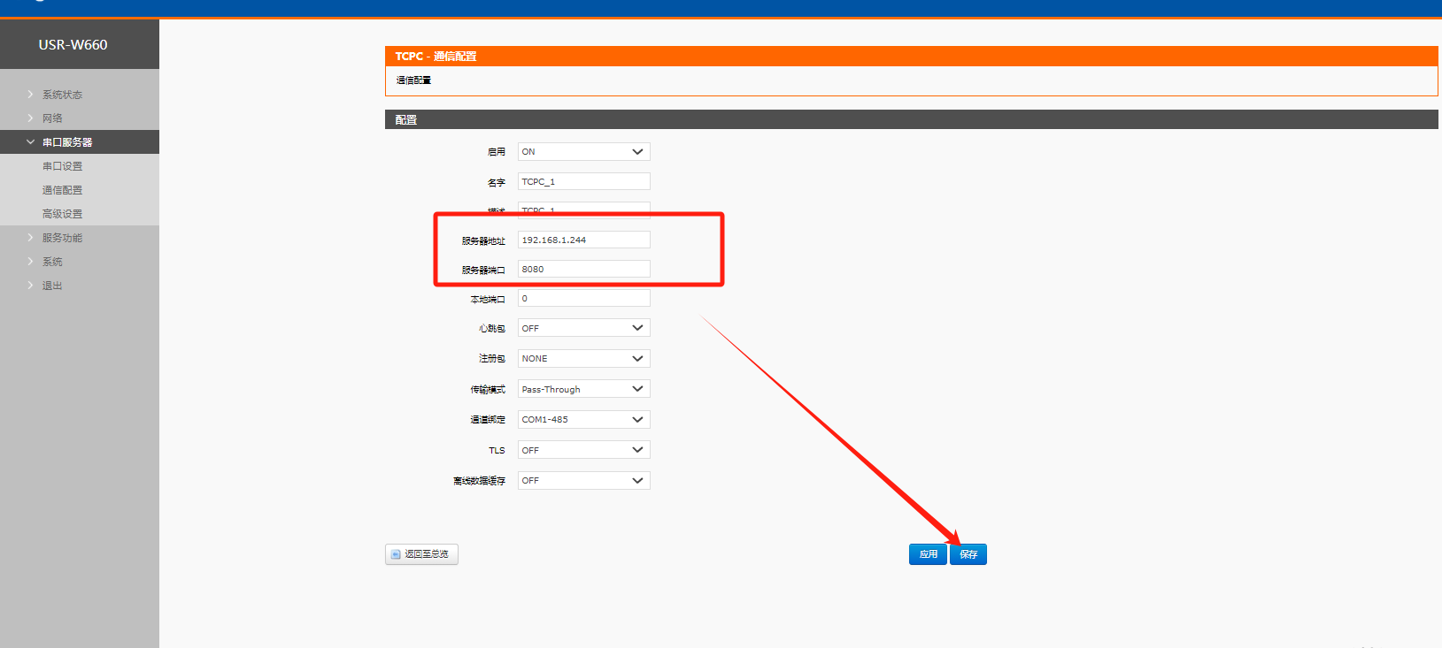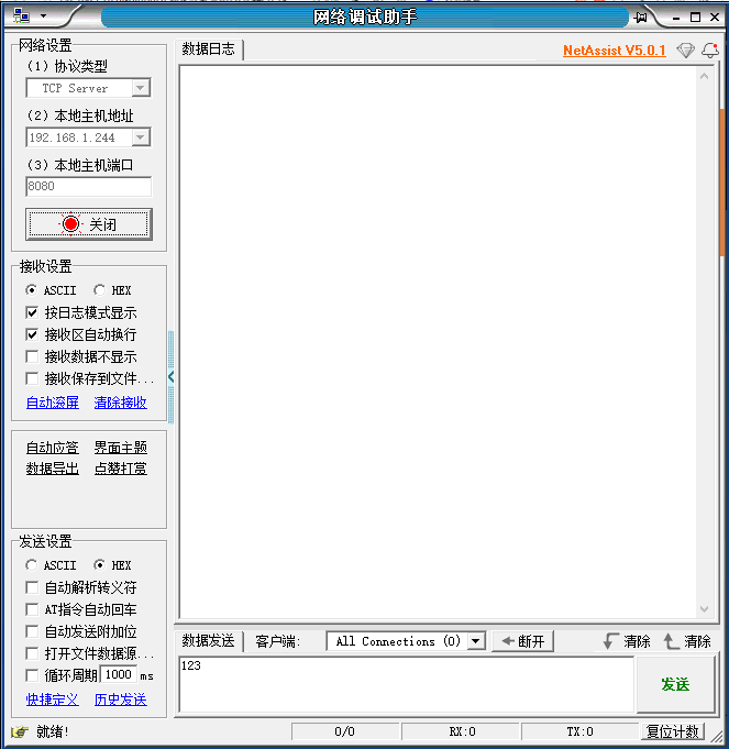 4、上位機(jī)服務(wù)器的IP為:192.168.1.244,端口為8080;