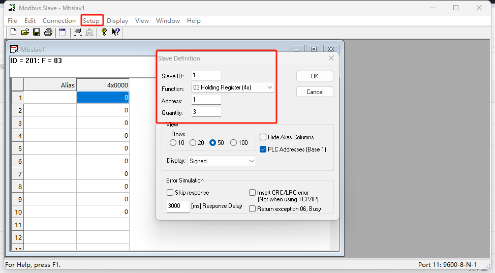 3、Modbus Slave軟件配置