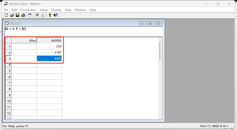 在modbus slave 軟件中填入三個(gè)數(shù)據(jù),即可在有人云端查看到相應(yīng)的數(shù)據(jù)