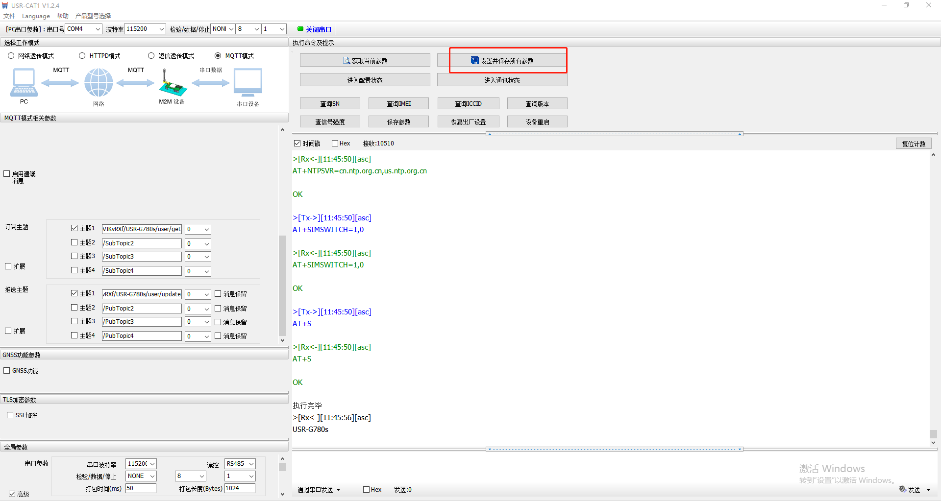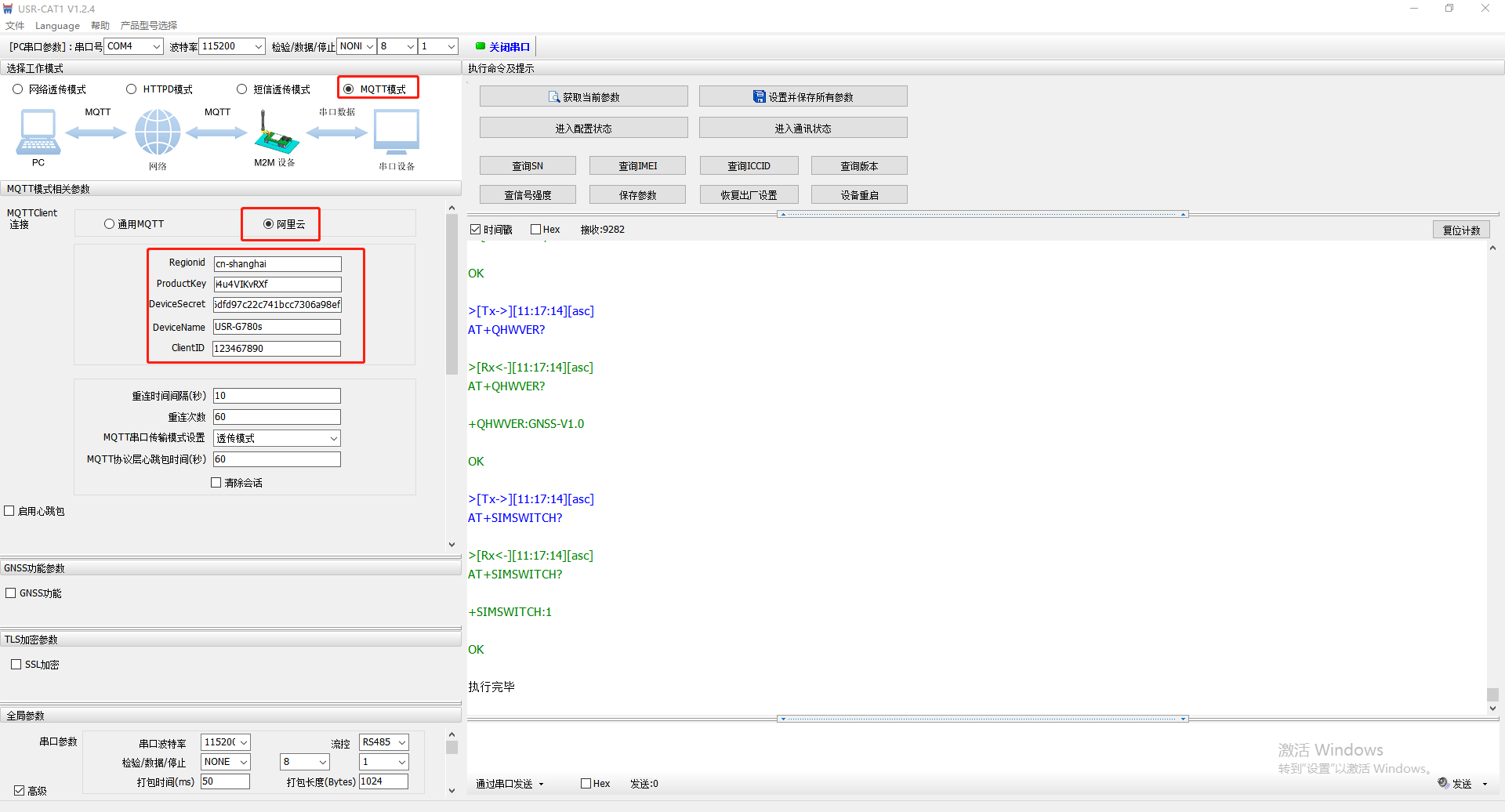 USR-G780s MQTT模式連接阿里云示例