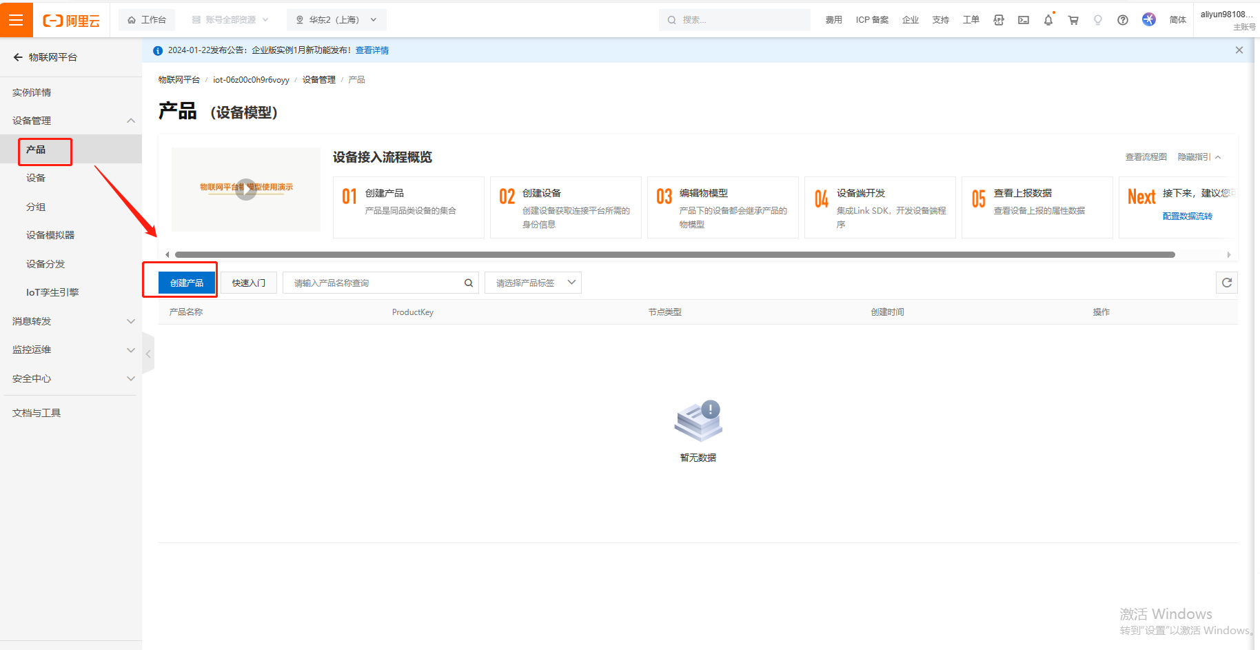 ProductKey產(chǎn)品密鑰填寫對應(yīng)阿里云平臺設(shè)備的i4u4VIKvRXf