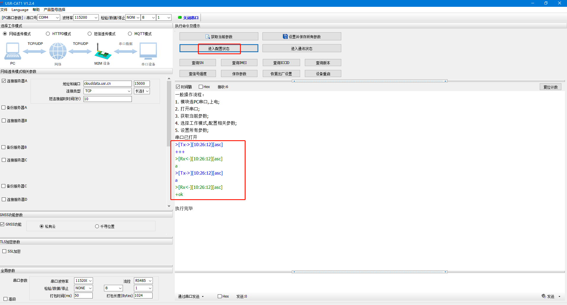 2、打開(kāi)串口,點(diǎn)擊進(jìn)入配置狀態(tài)