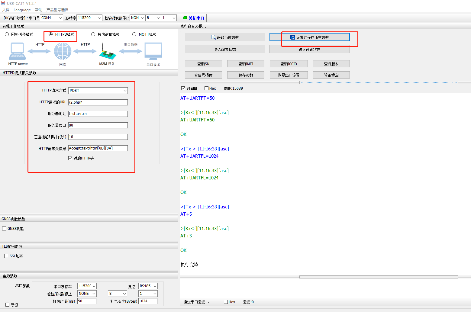 注:這里使用有人公司的測(cè)試服務(wù)器,收到串口數(shù)據(jù)會(huì)將數(shù)據(jù)返回串口。實(shí)際使用,可以直接連接實(shí)際的HTTPD服務(wù)器。