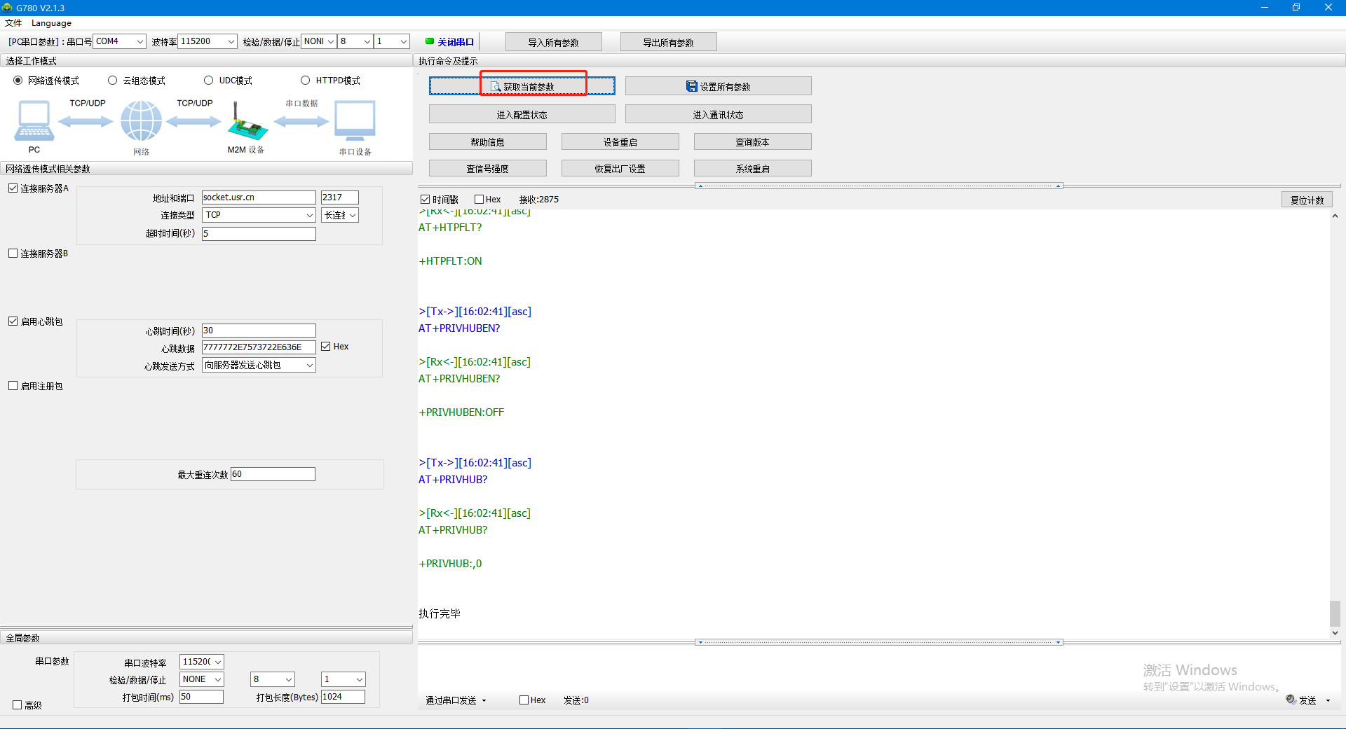 備注:USR-G780 V2連接有人公司測(cè)試遠(yuǎn)程服務(wù)器,需要USR-G780 V2聯(lián)網(wǎng),需要插可以正常聯(lián)網(wǎng)的物聯(lián)卡或者手機(jī)卡。實(shí)際測(cè)試連接實(shí)際使用的遠(yuǎn)程服務(wù)器。