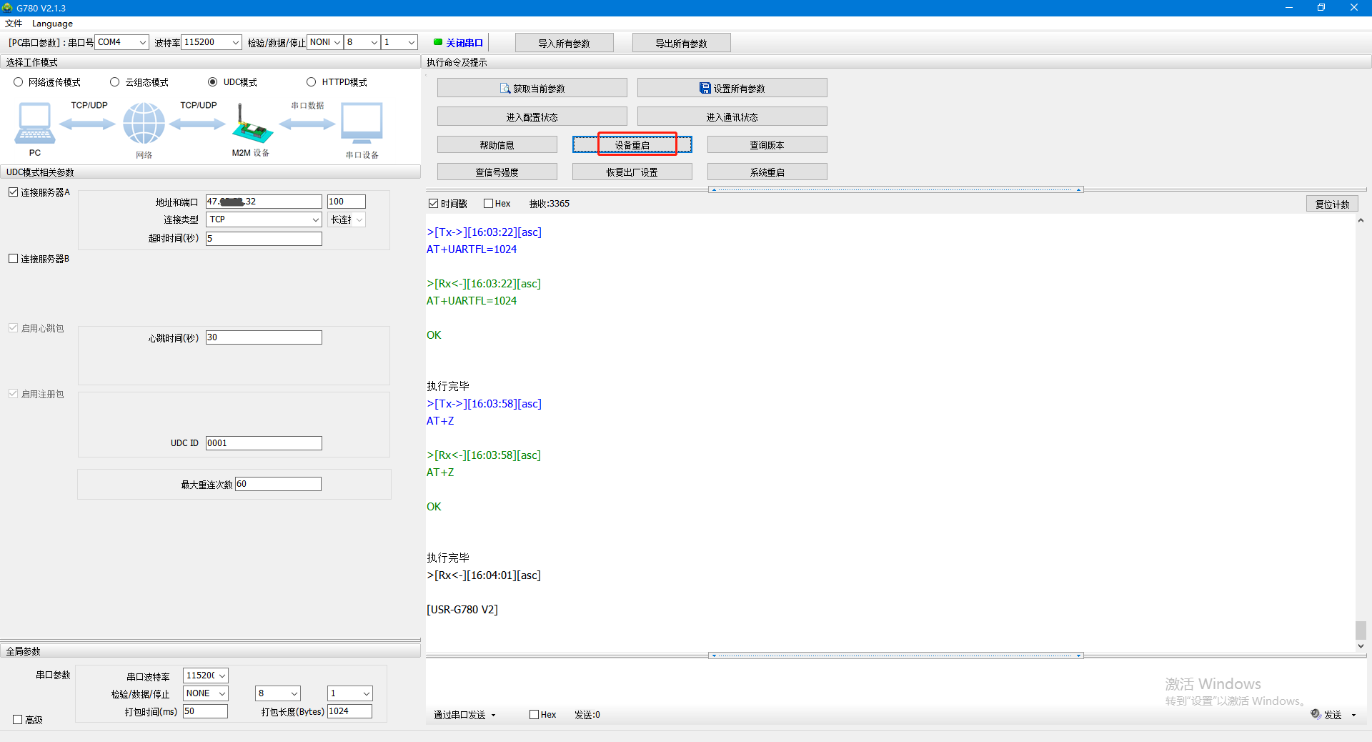 USR-G780 V2 協(xié)議透傳 UDC 模式示例