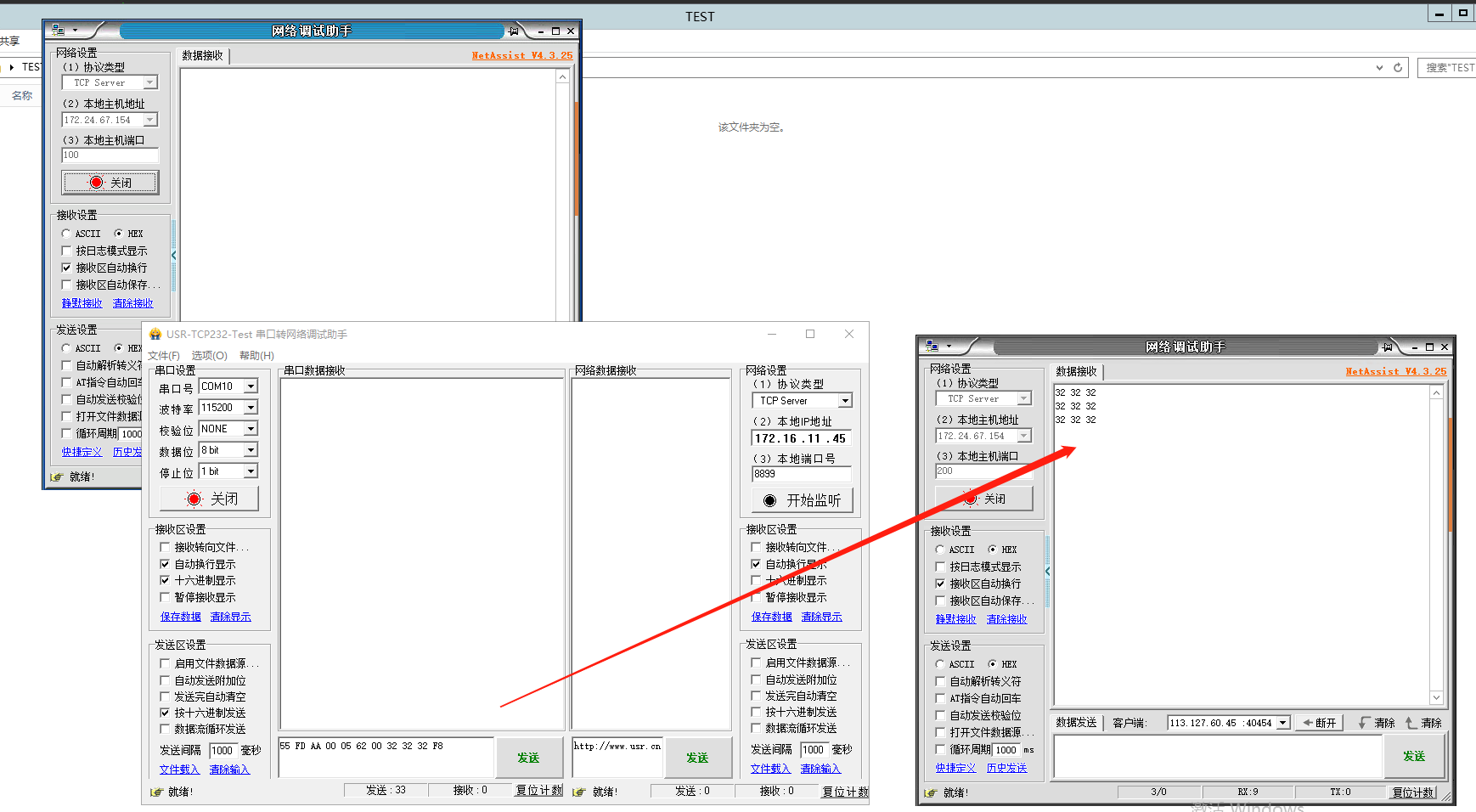 按照規(guī)則計(jì)算,得出向服務(wù)器B(參數(shù)區(qū)用62 00)發(fā)送數(shù)據(jù)32 32 32是HEX格式的:55 FD AA 00 05 62 00 32 32 32 F8