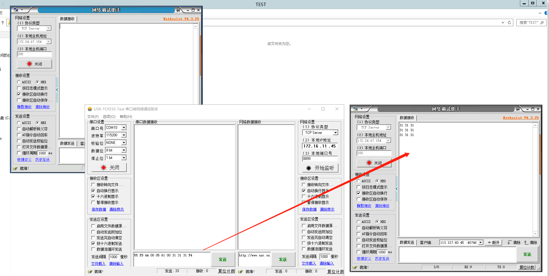 按照規(guī)則計(jì)算,得出向服務(wù)器A(參數(shù)區(qū)用61 00)發(fā)送數(shù)據(jù)31 31 31是HEX格式的:55 FD AA 00 05 61 00 31 31 31 F4