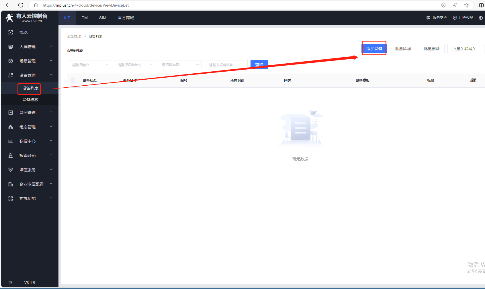 (4)添加設備,點擊設備管理,點擊設備列表,點擊添加設備。