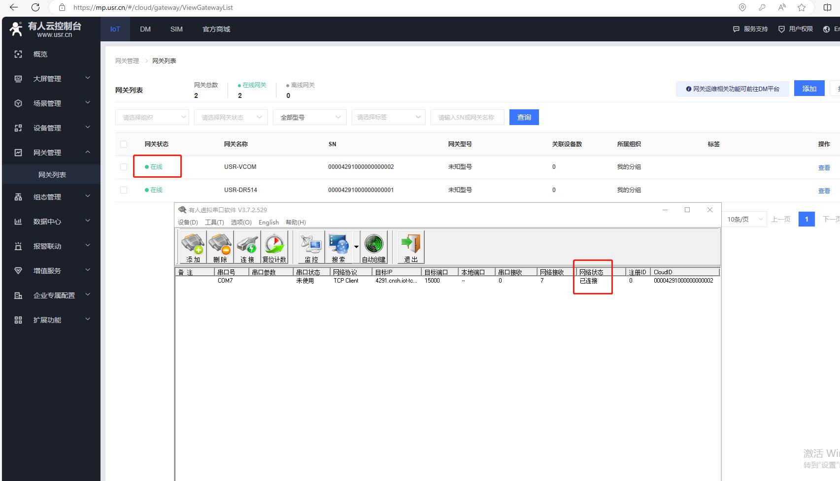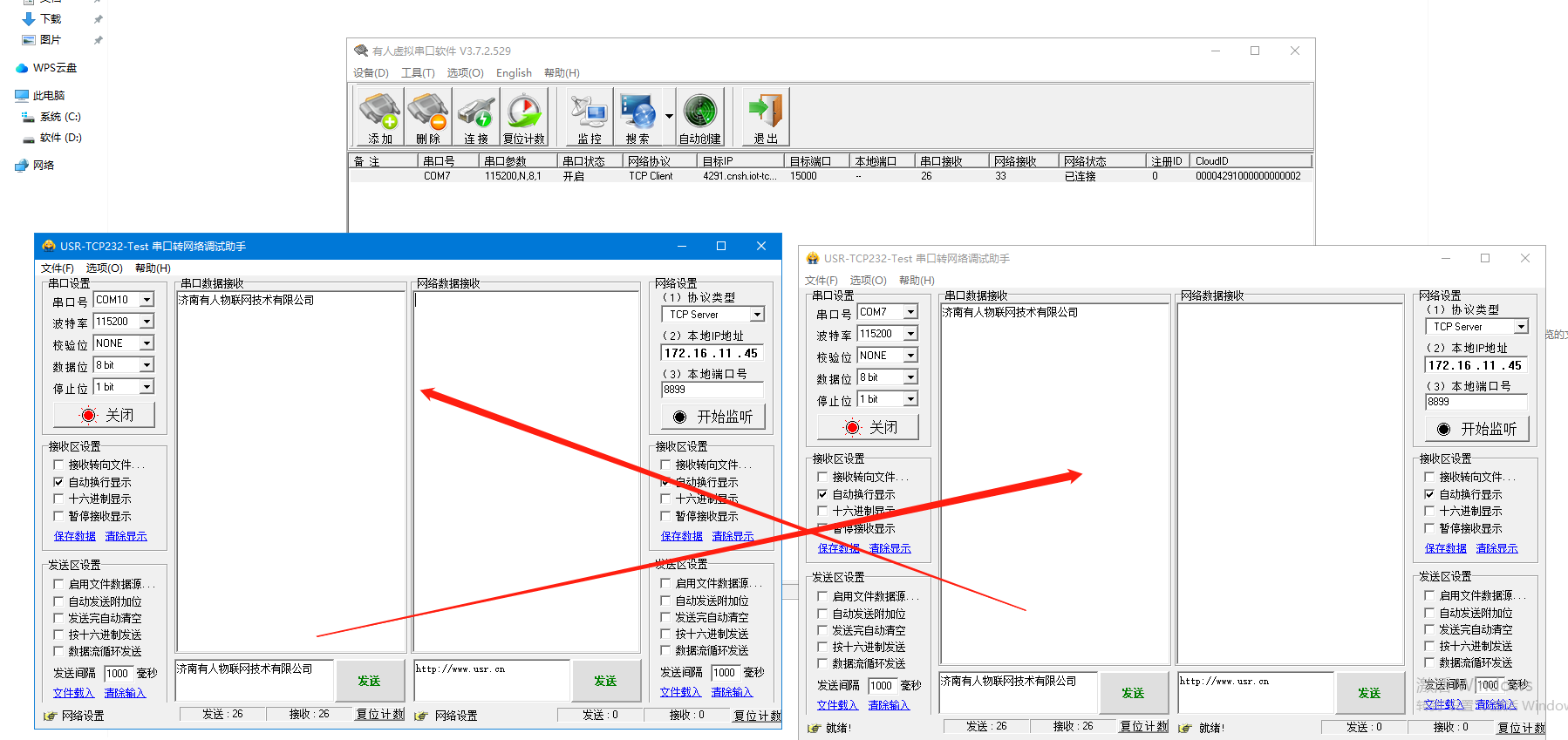 USR-DR514 連接有人云(V6版本)和虛擬串口(V3.7.2.529版本)一對一通訊示例