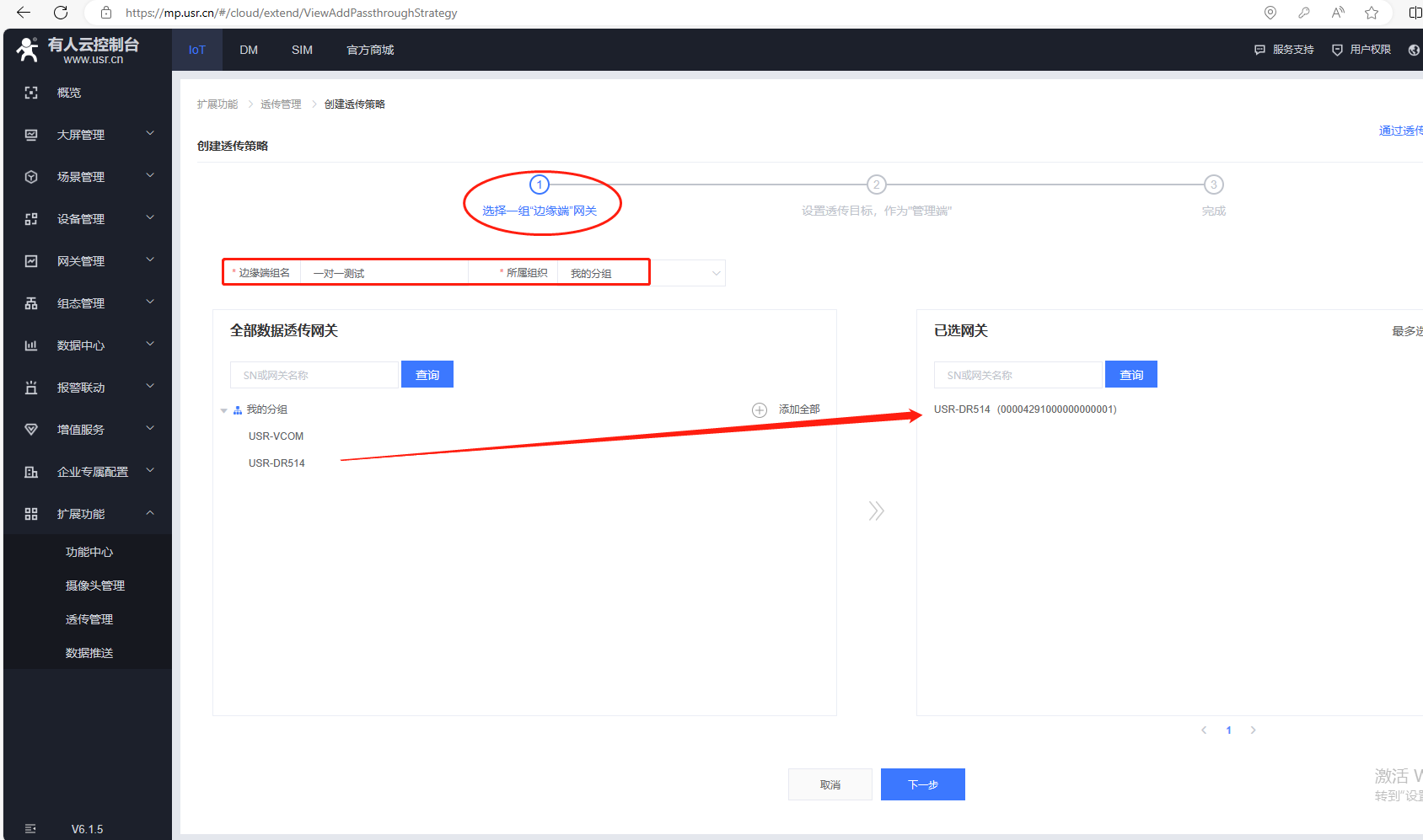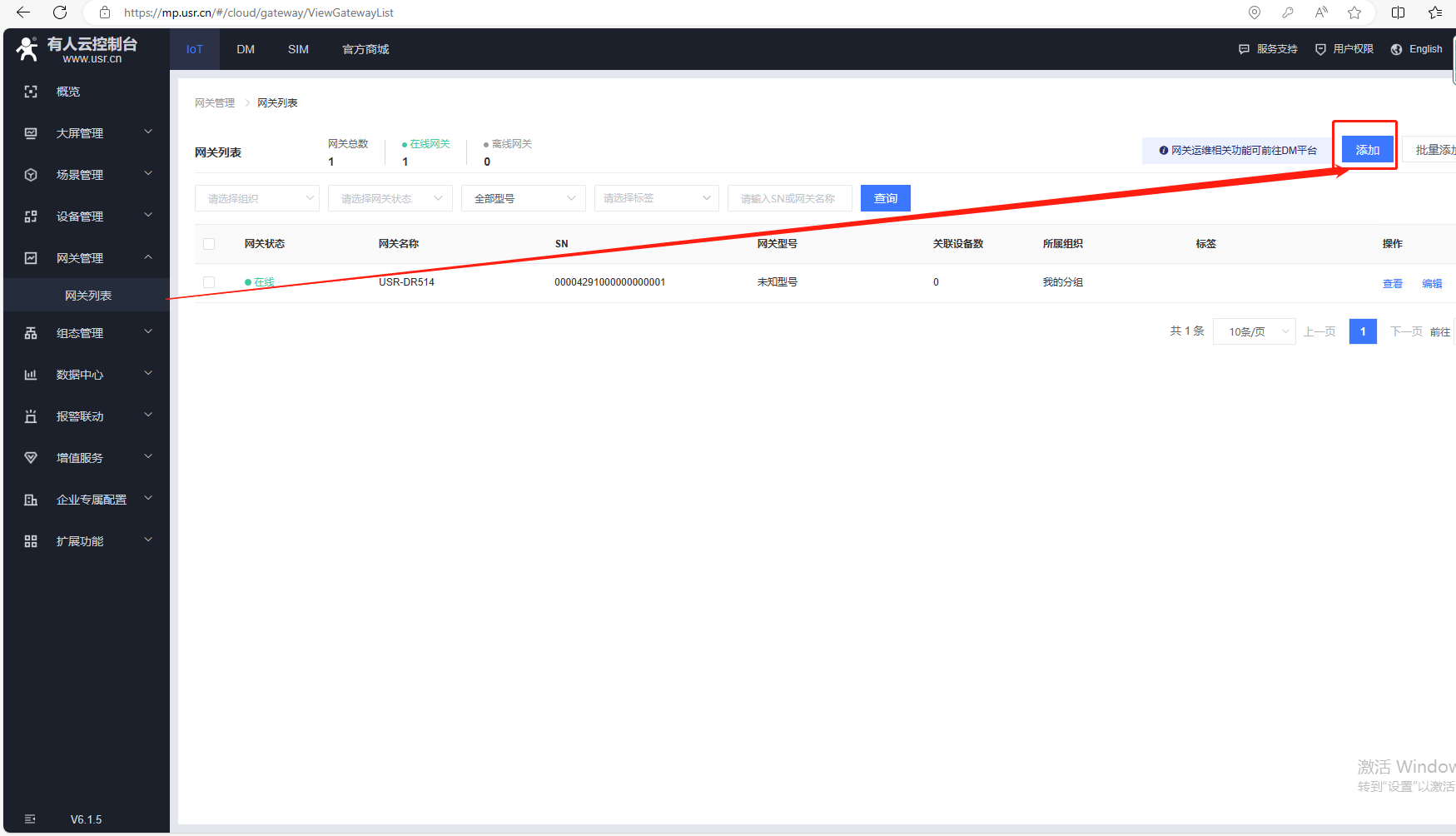 2、選擇邊緣端網(wǎng)關(guān),添加的USR-DR514設(shè)備