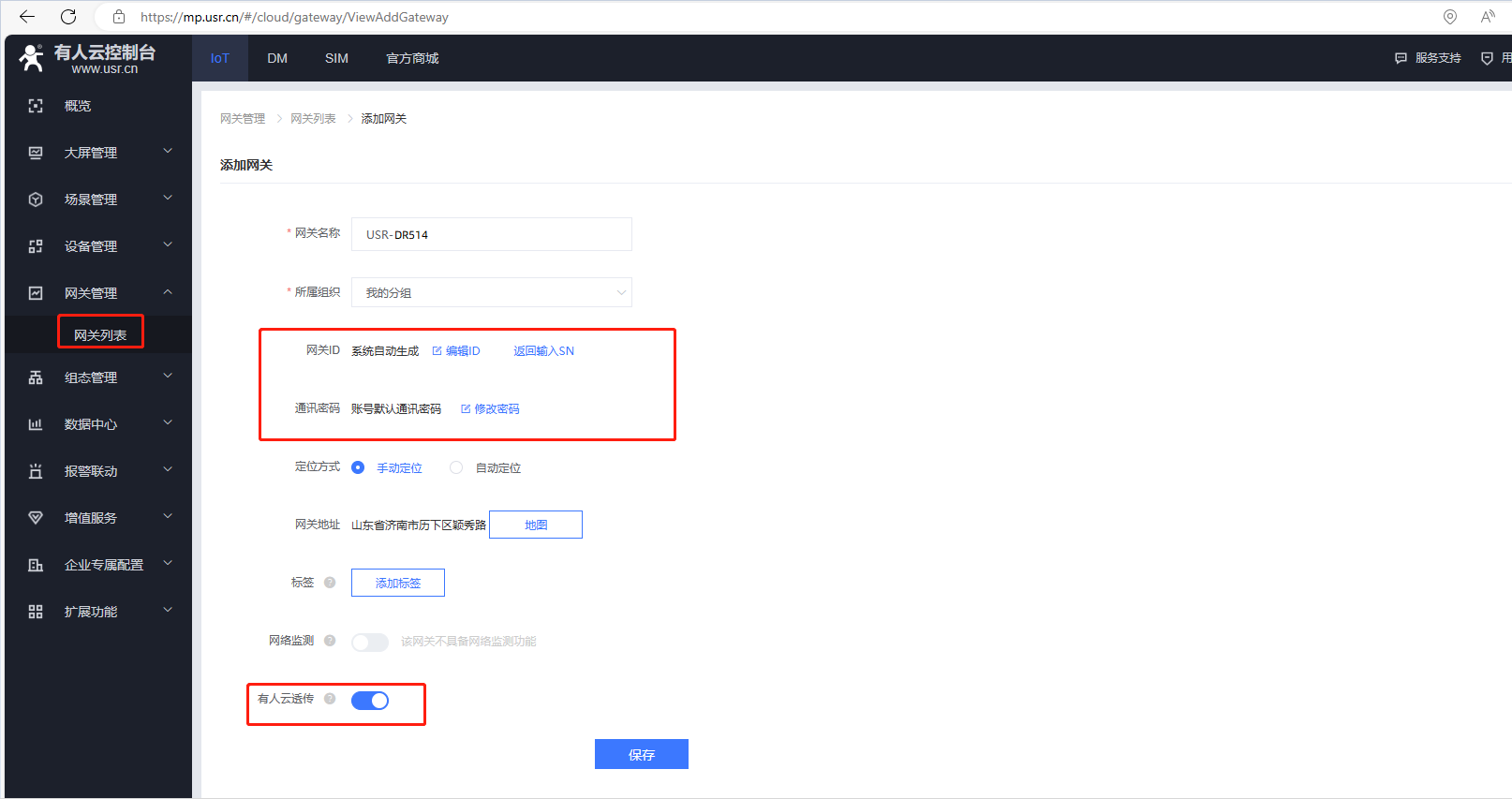 (2)USR-DR514不支持SN上云,就點(diǎn)擊SN不支持,點(diǎn)這里,用自動生成的ID方式上云,在有人云上添加設(shè)備,勾選有人云透傳。