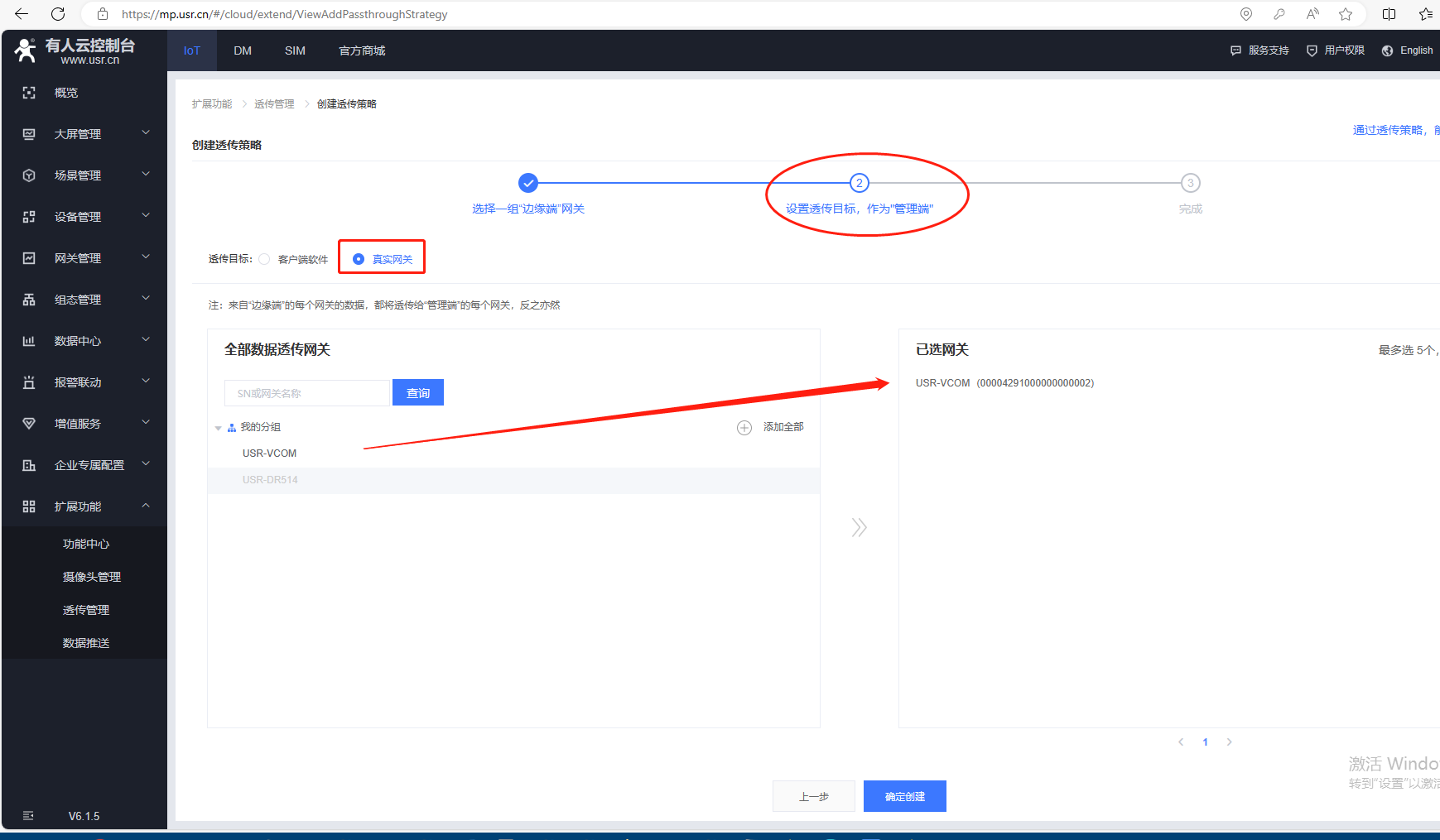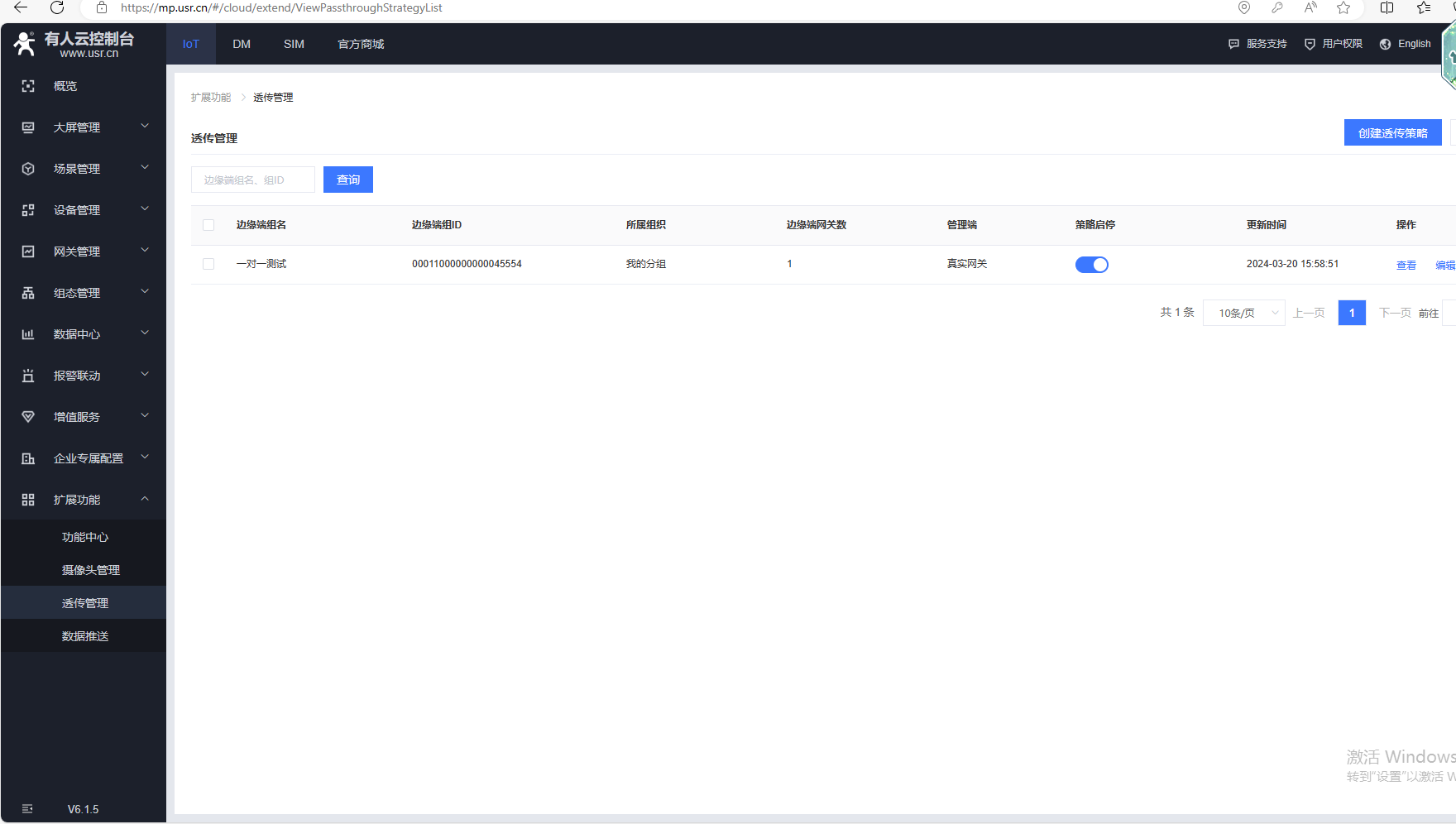 1、擴(kuò)展功能,透傳管理,創(chuàng)建一個透傳策
