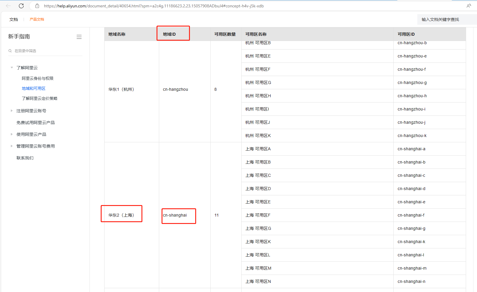 (2)根據(jù)地域名稱華東2(上海)查詢地域ID:cn-shanghai