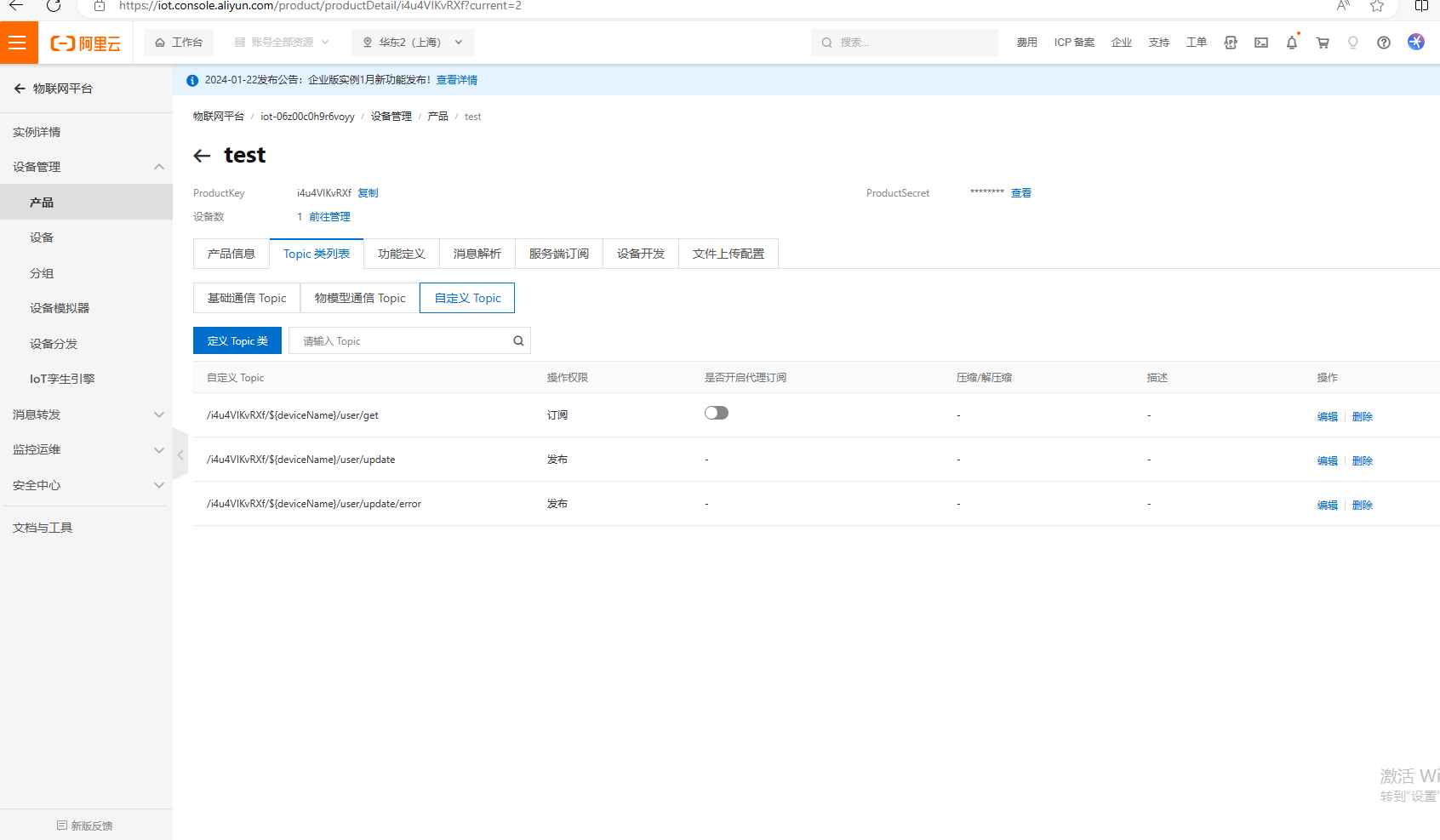 (2)點(diǎn)擊Topic類列表,點(diǎn)擊自定義Topic,找到訂閱和發(fā)布