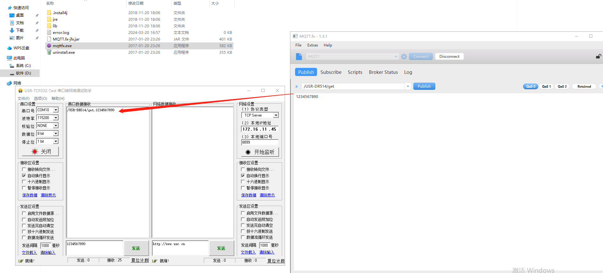 6、MQTT.fx軟件推送,USR-DR514訂閱測試(數(shù)據(jù)格式是透傳)