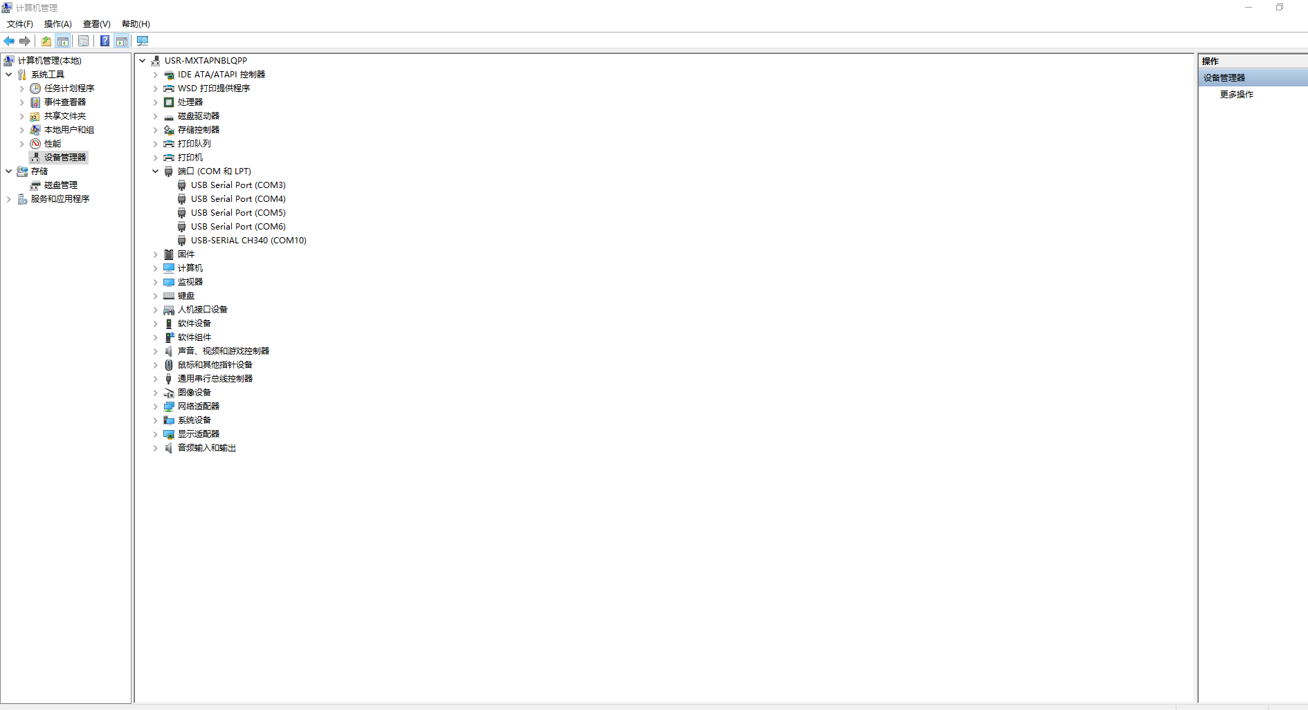 電腦鼠標點擊計算機管理,右擊,點開設(shè)備管理器,點擊端口,查看接USR-DR514的USB-RS485串口線COM口號,COM10。