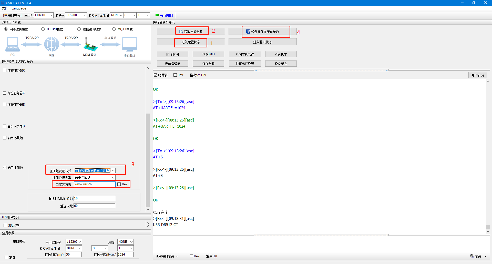 1、打開(kāi)USR-DR512設(shè)置軟件USR-CAT1 V1.1.4.exe