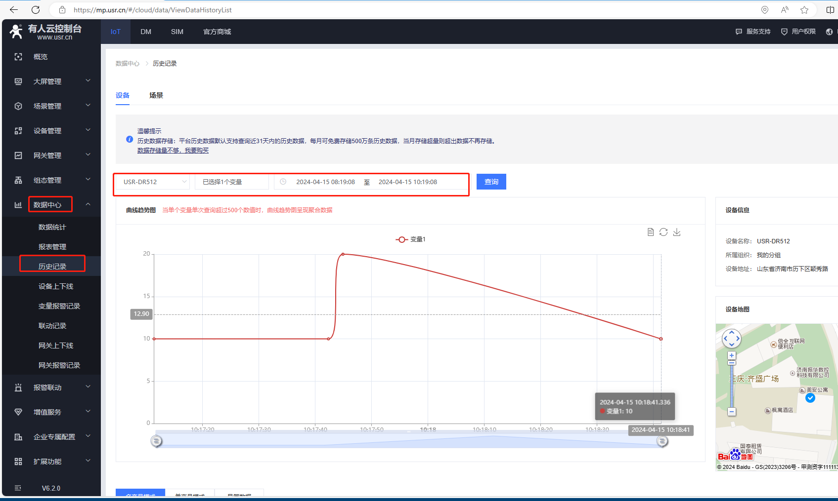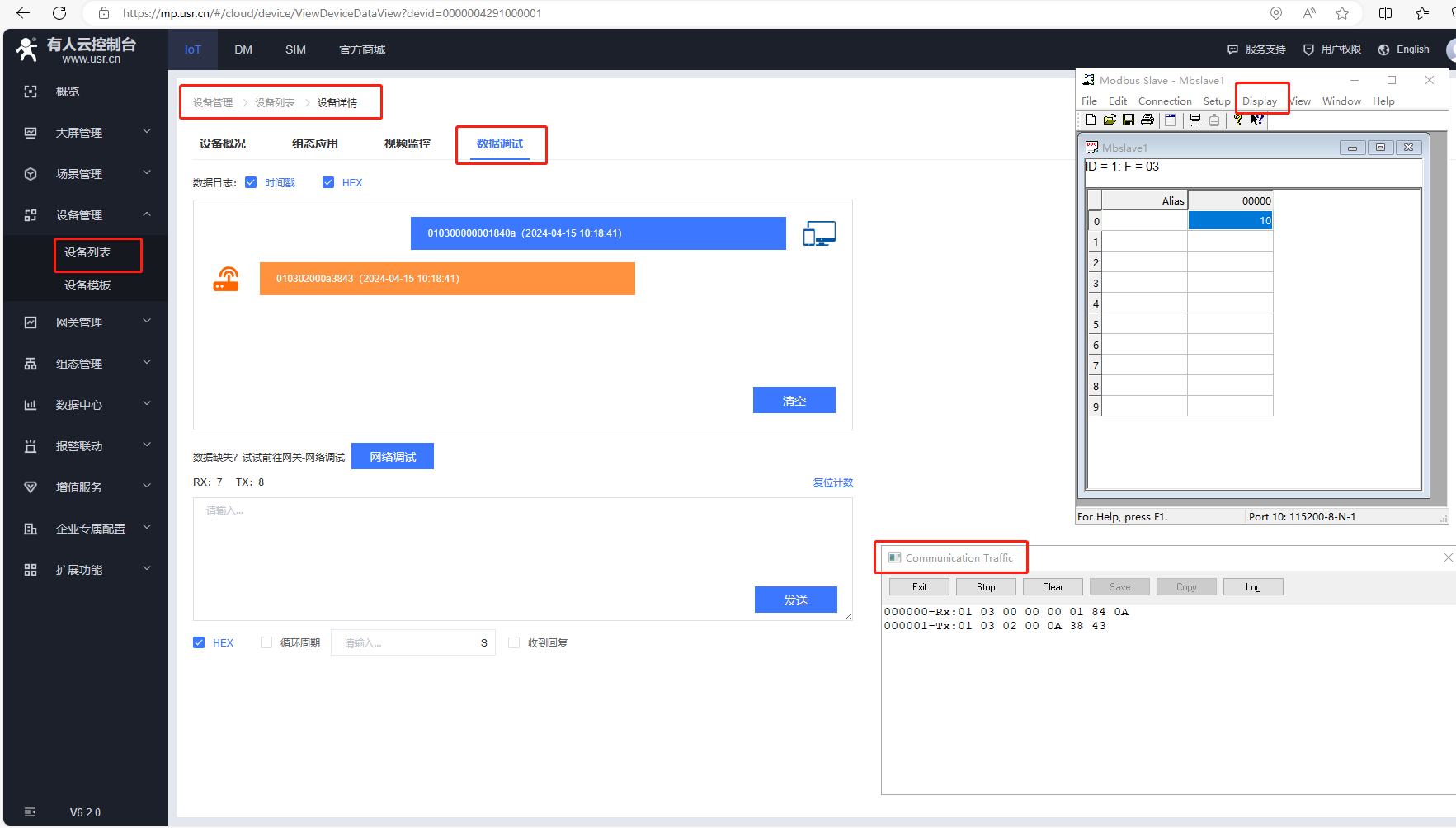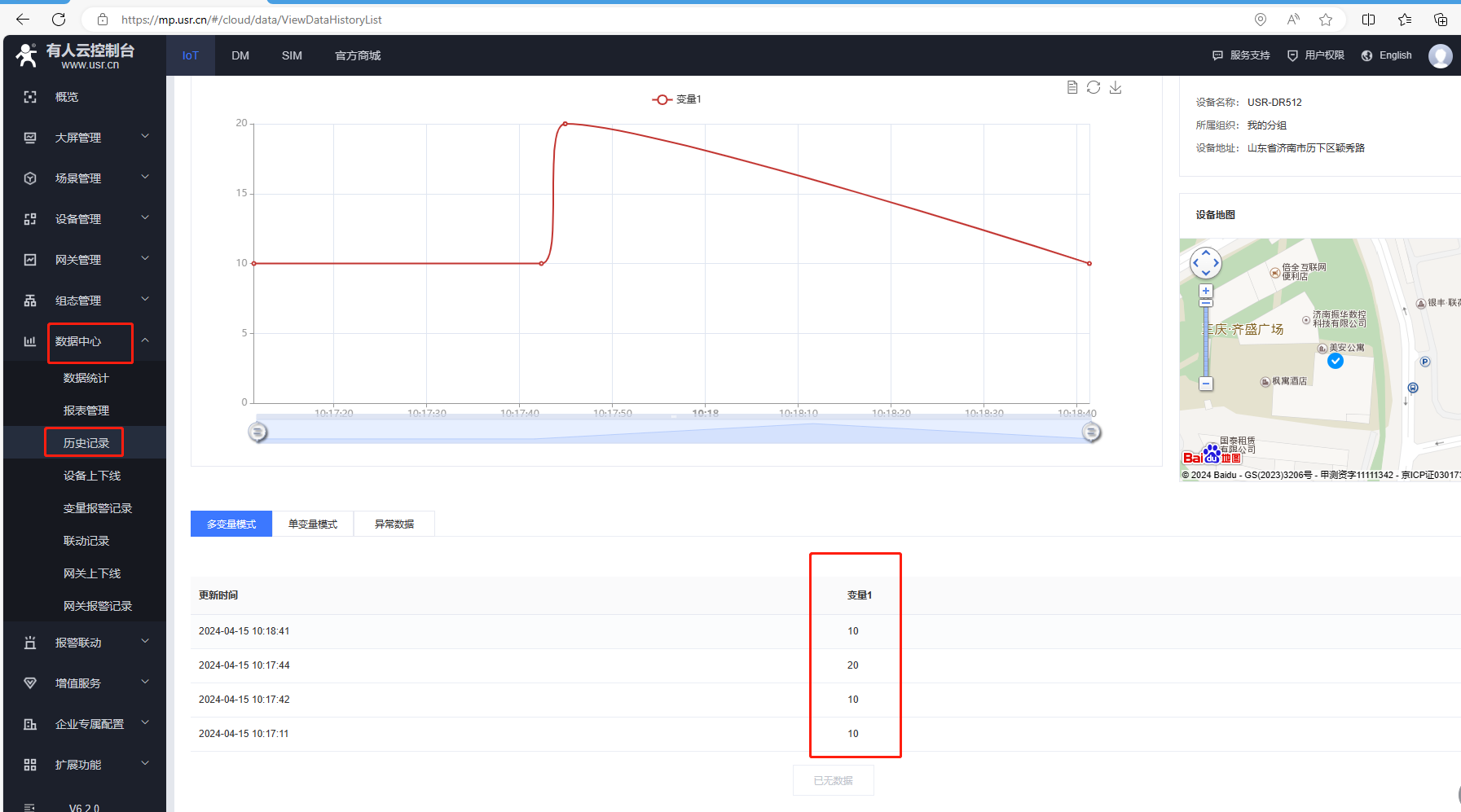 還可以利用有人云的數(shù)據(jù)調(diào)試功能,查看有人云的數(shù)據(jù)收發(fā)是否正常。