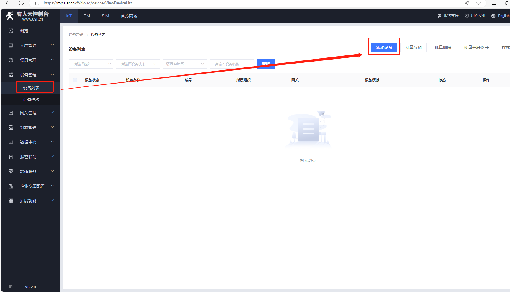 (4)添加設(shè)備,點擊設(shè)備管理,點擊設(shè)備列表,點擊添加設(shè)備。