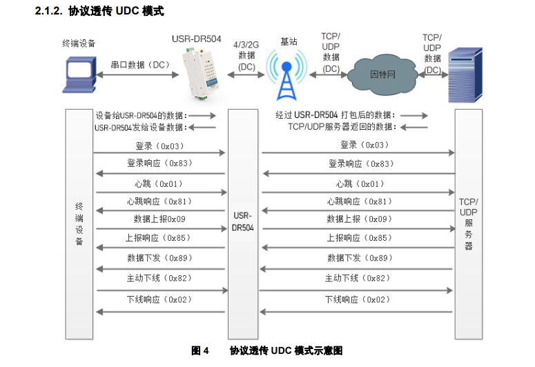 USR-DR504 V3T協(xié)議透?jìng)?UDC 模式示例