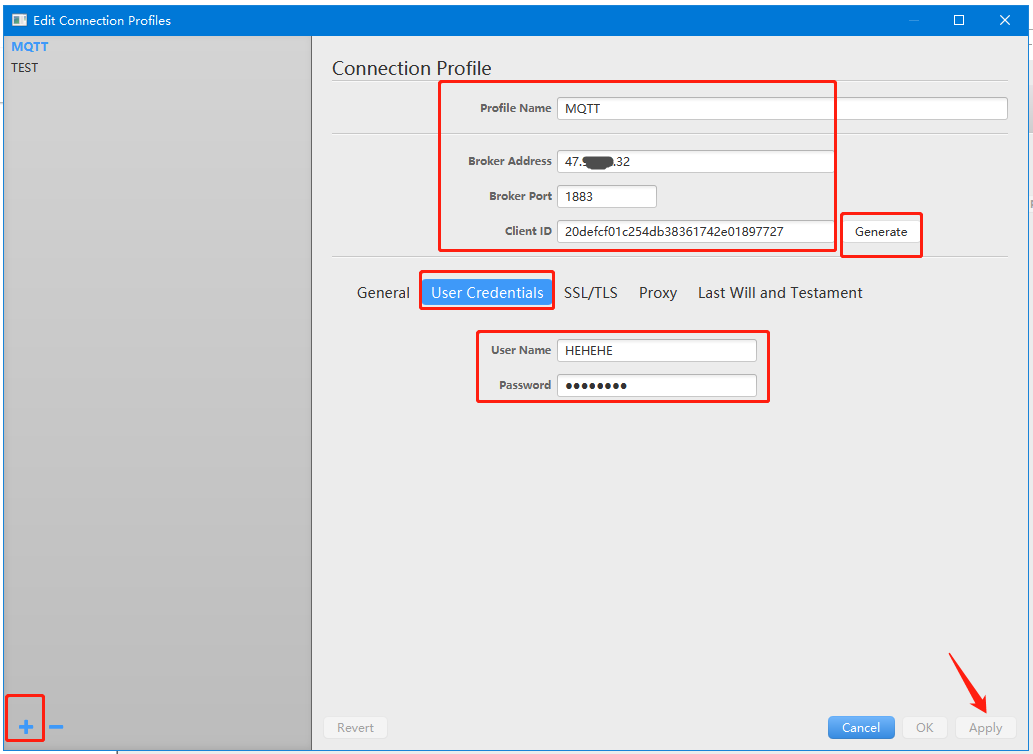(4)Client ID(客戶端ID)可以點擊后面的Generate自動創(chuàng)建,注意和USR-DR504的客戶端ID不要一樣,如果相同會沖突。