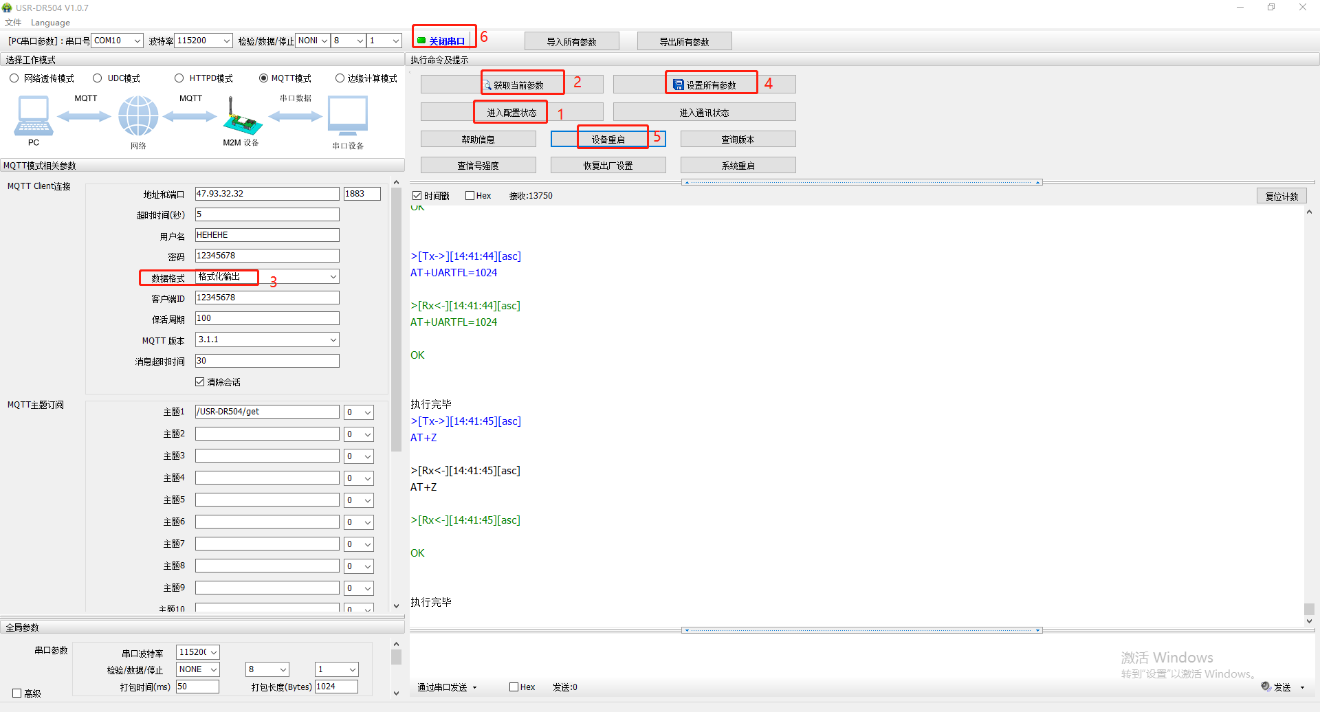 5、MQTT.fx軟件推送,USR-DR504訂閱測試(數(shù)據(jù)格式是格式化輸出)