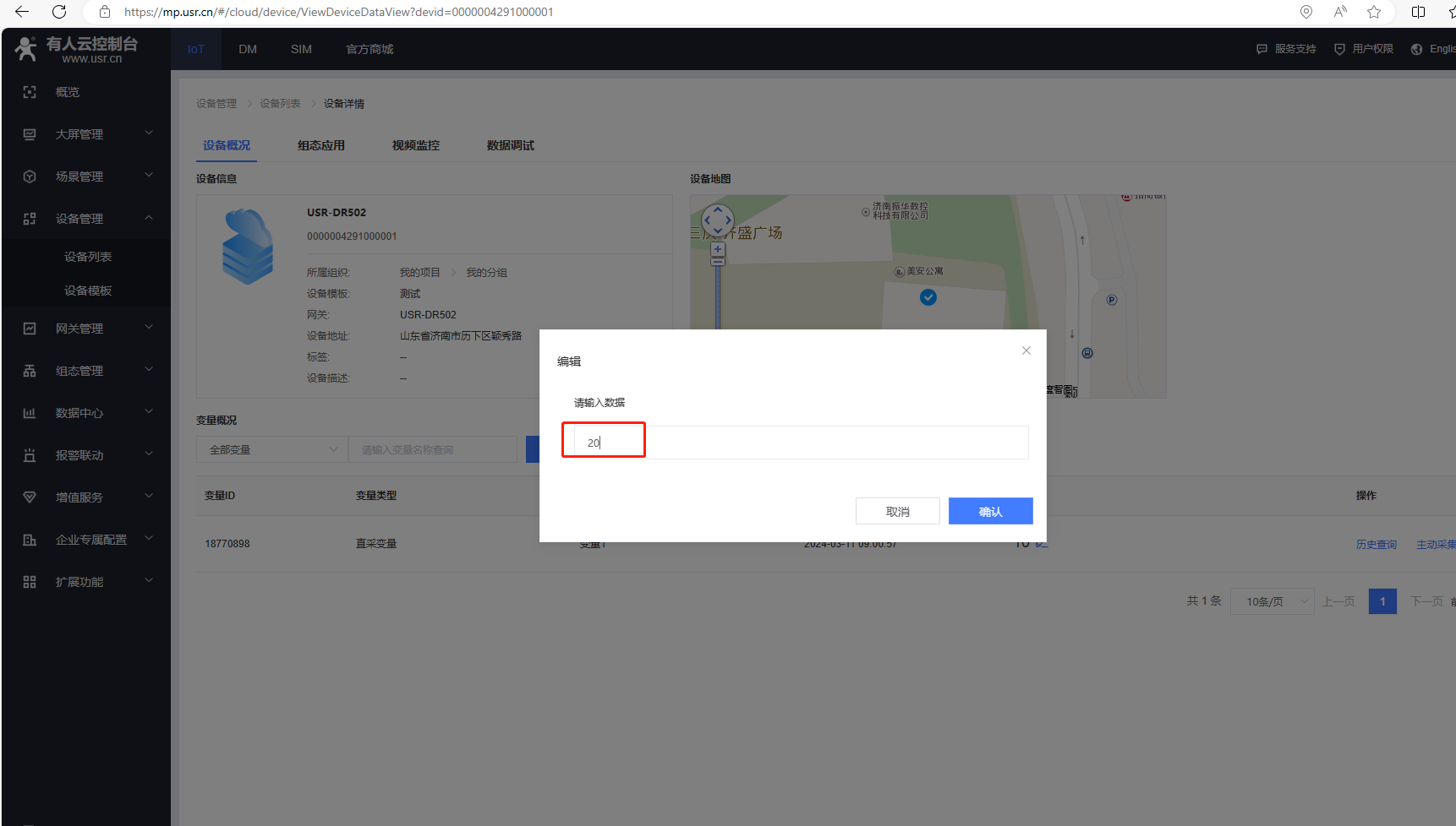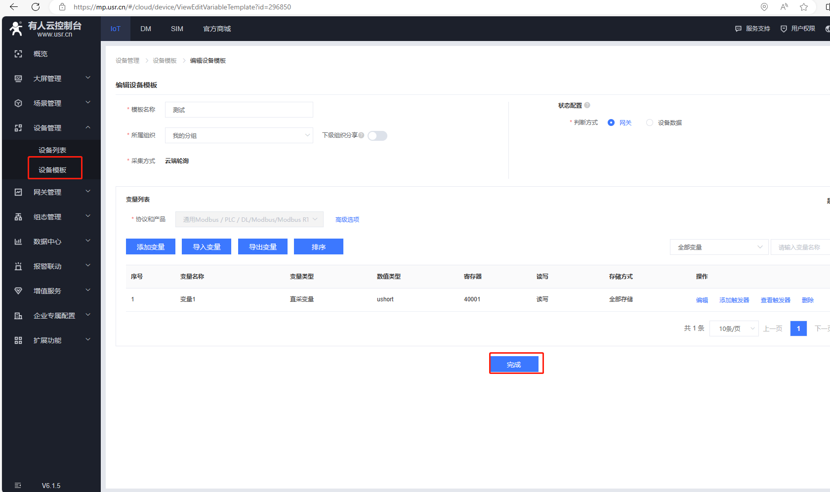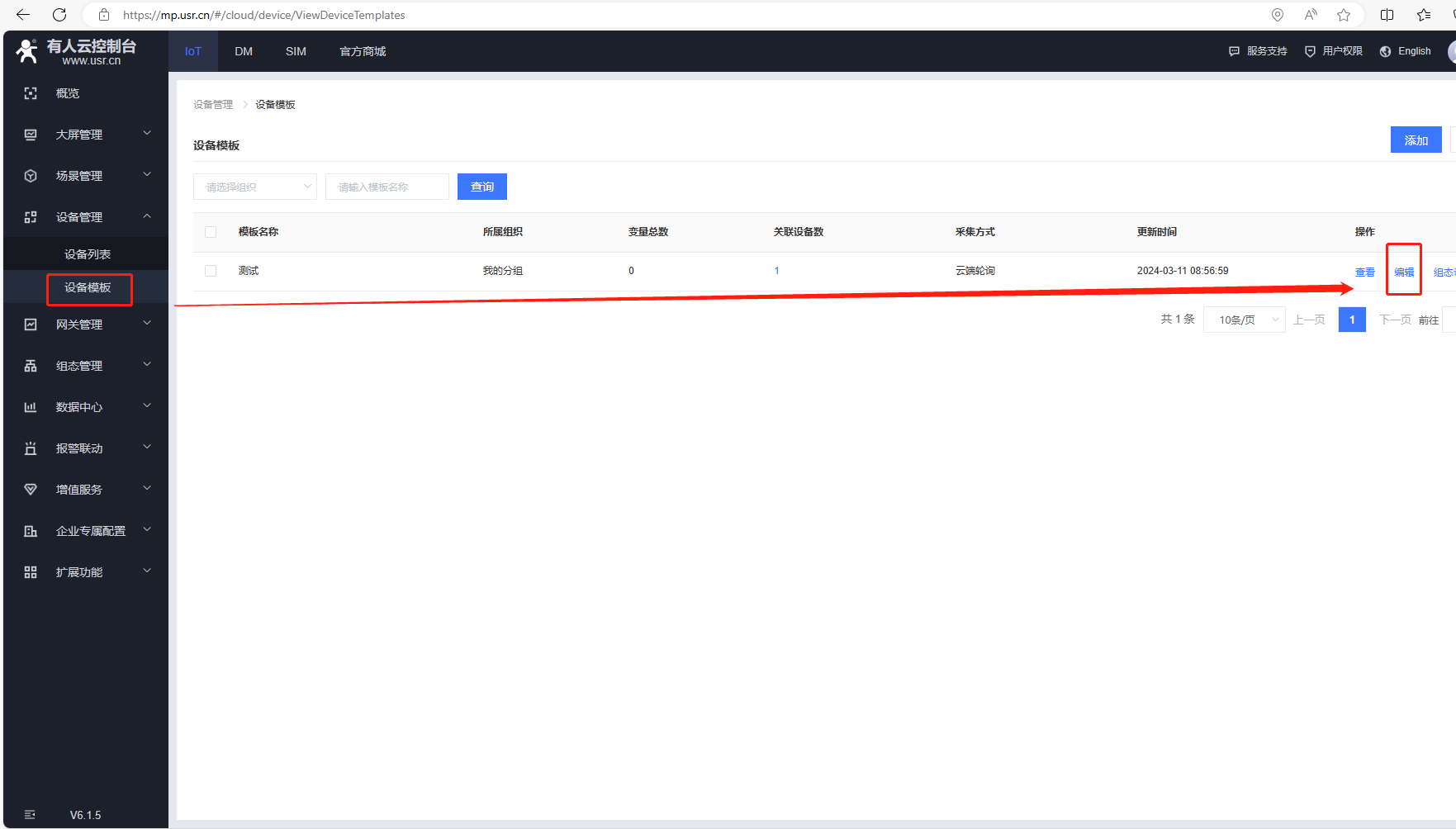 (7)添加變量,點擊設備管理,點擊設備模板,點擊編輯。