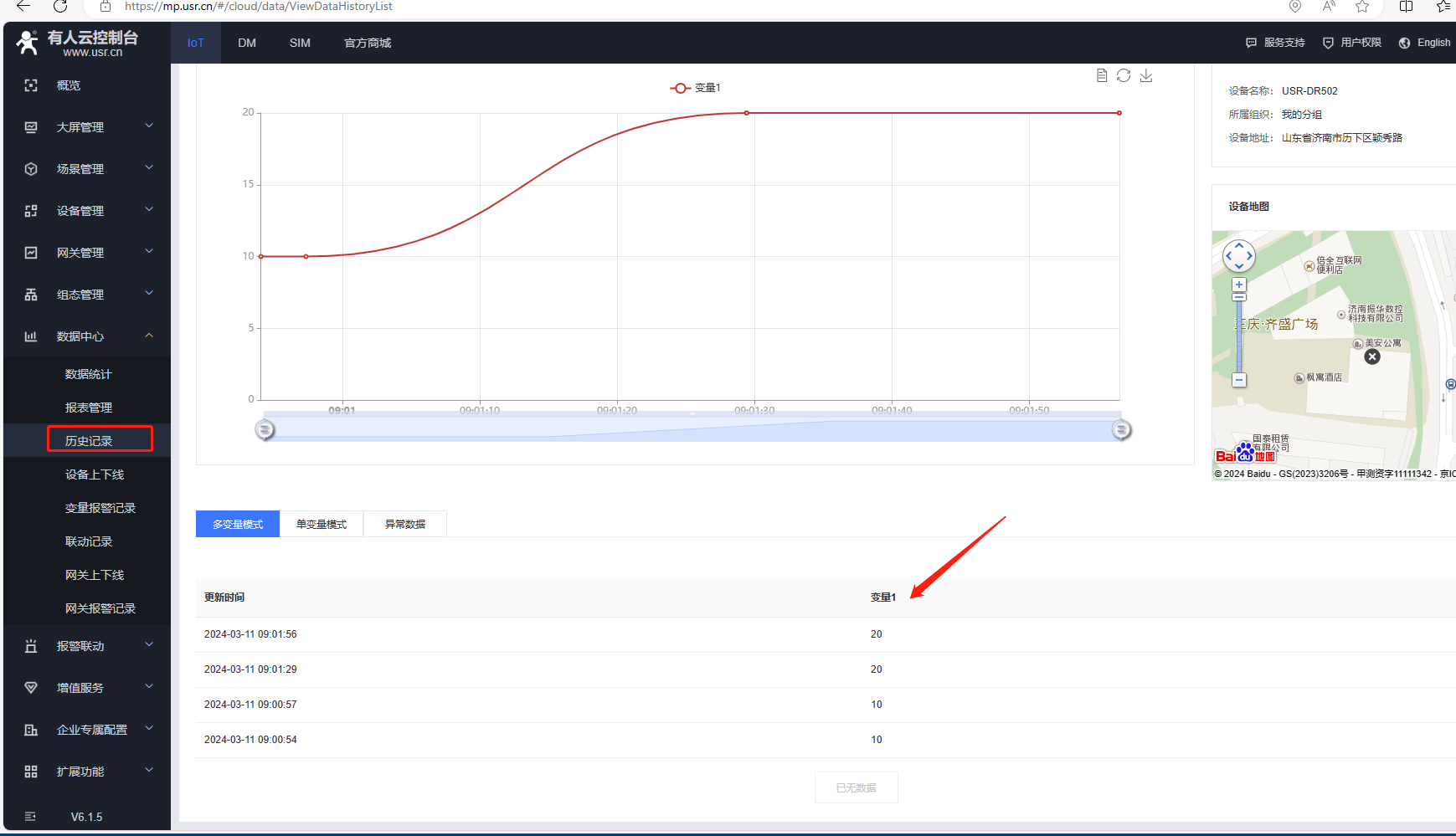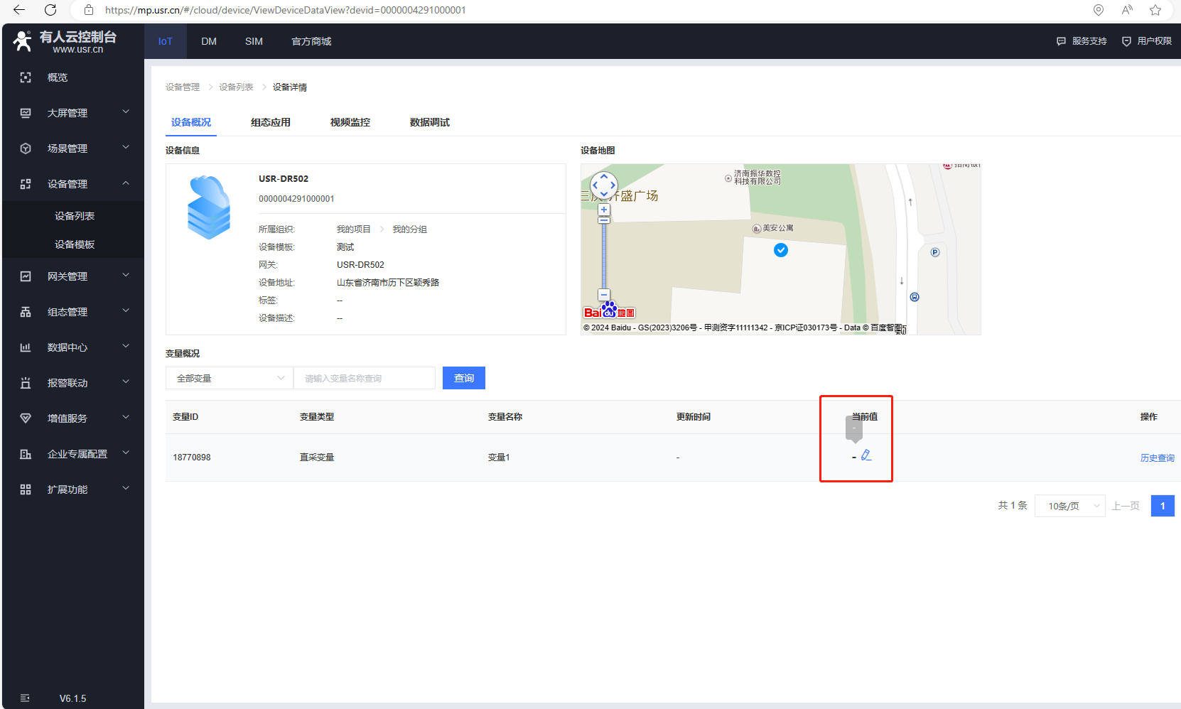 (8)返回設備列表,點擊設備名稱,可以去查看變量當前值。