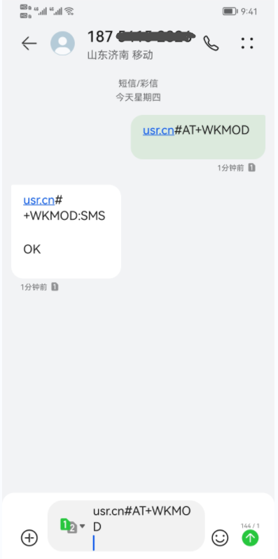 備注:USR-DR502測試短信透傳模式,需要插入可以正常發(fā)短信的手機(jī)卡。