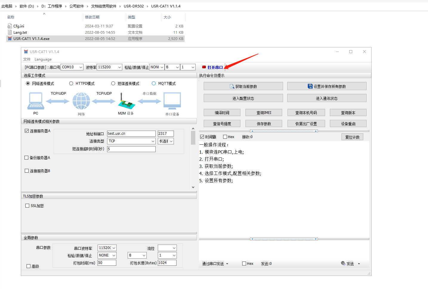 2、打開串口,點擊進(jìn)入配置狀態(tài)