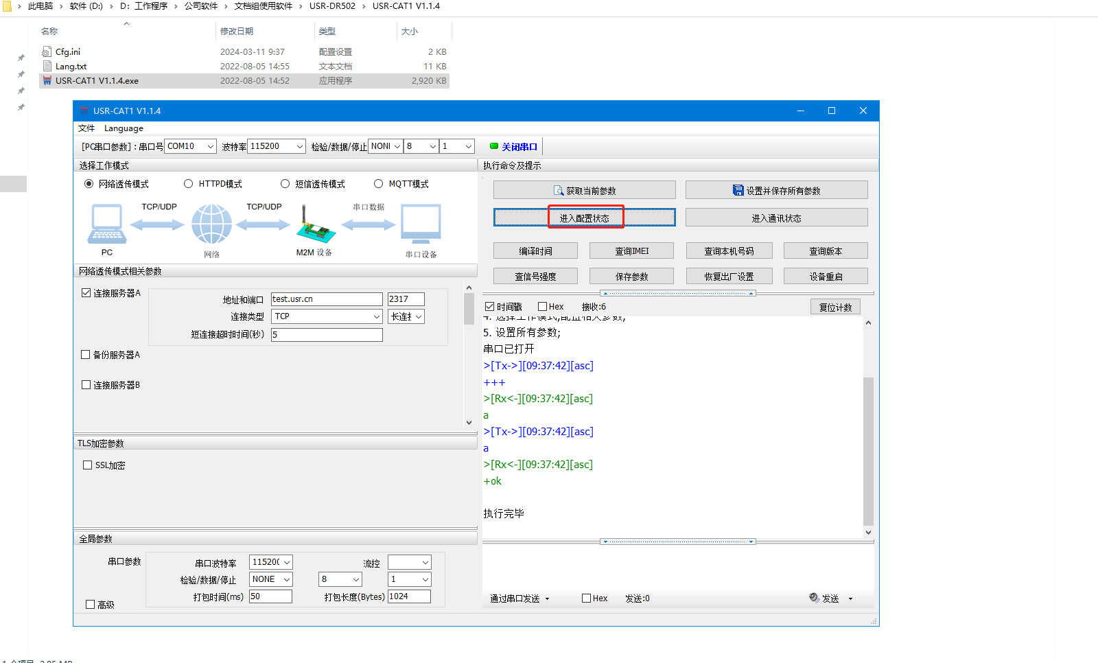 2、打開串口,點擊進入配置狀態(tài)