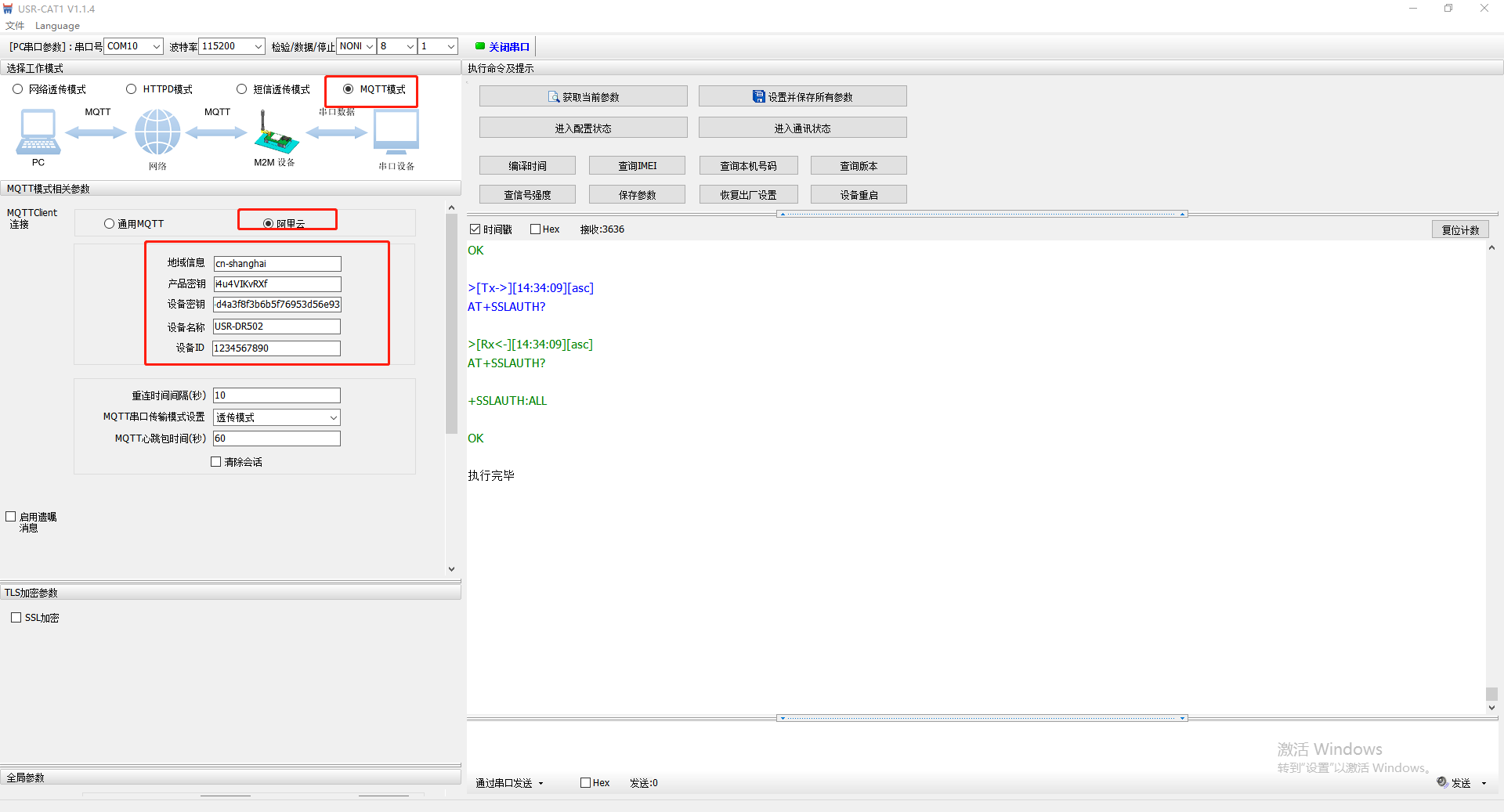 USR-DR502 MQTT模式連接阿里云示例