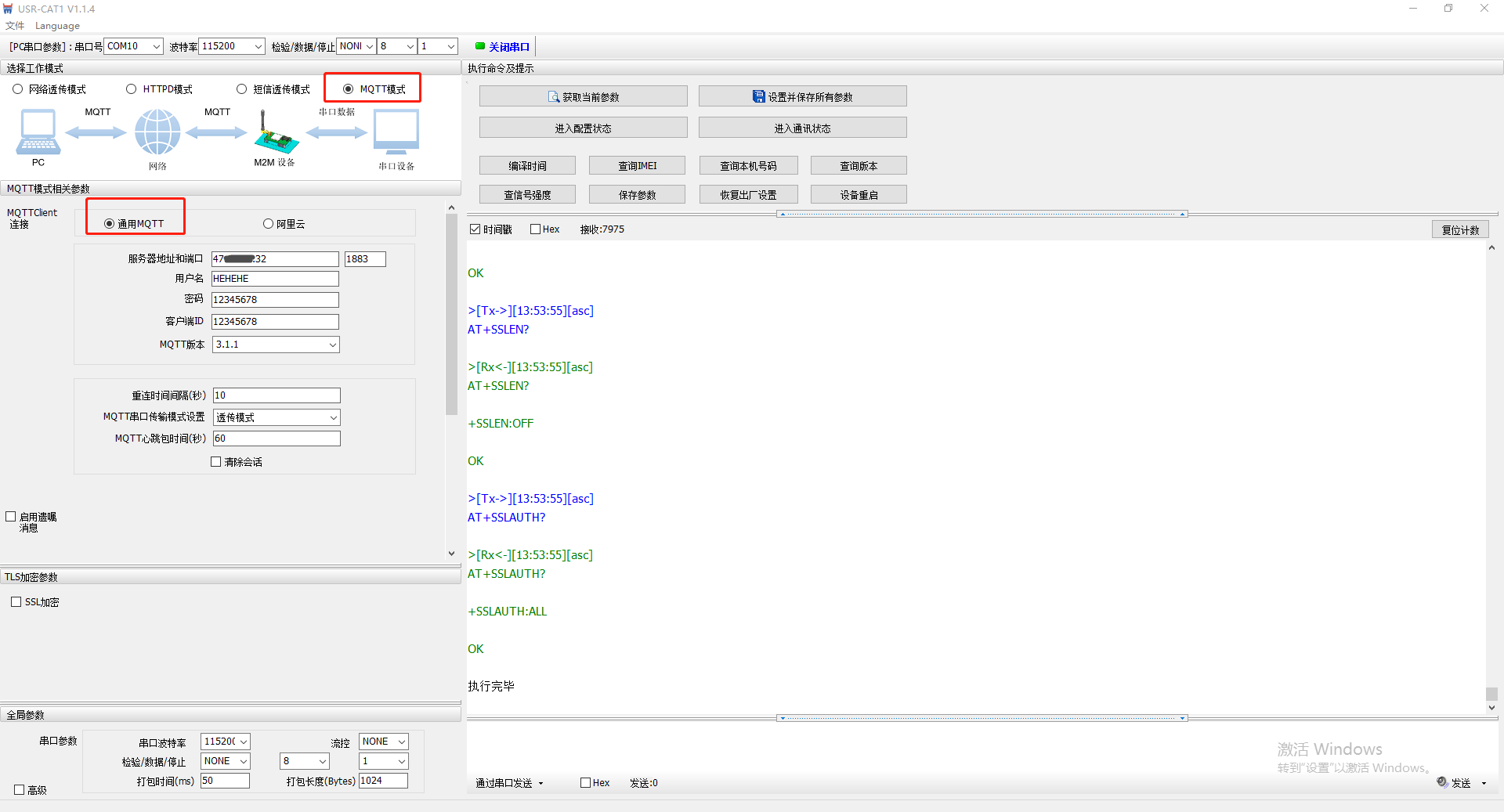 2、打開串口,點(diǎn)擊進(jìn)入配置狀態(tài)