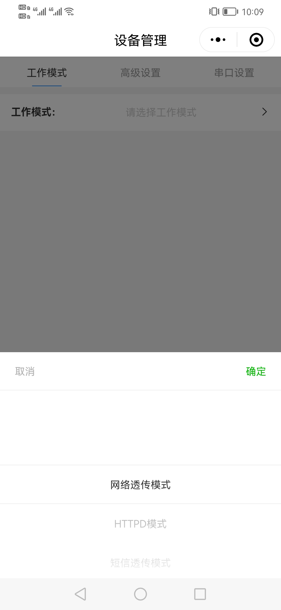 9、點(diǎn)擊工作模式,選擇網(wǎng)絡(luò)透?jìng)髂J?,點(diǎn)擊確定