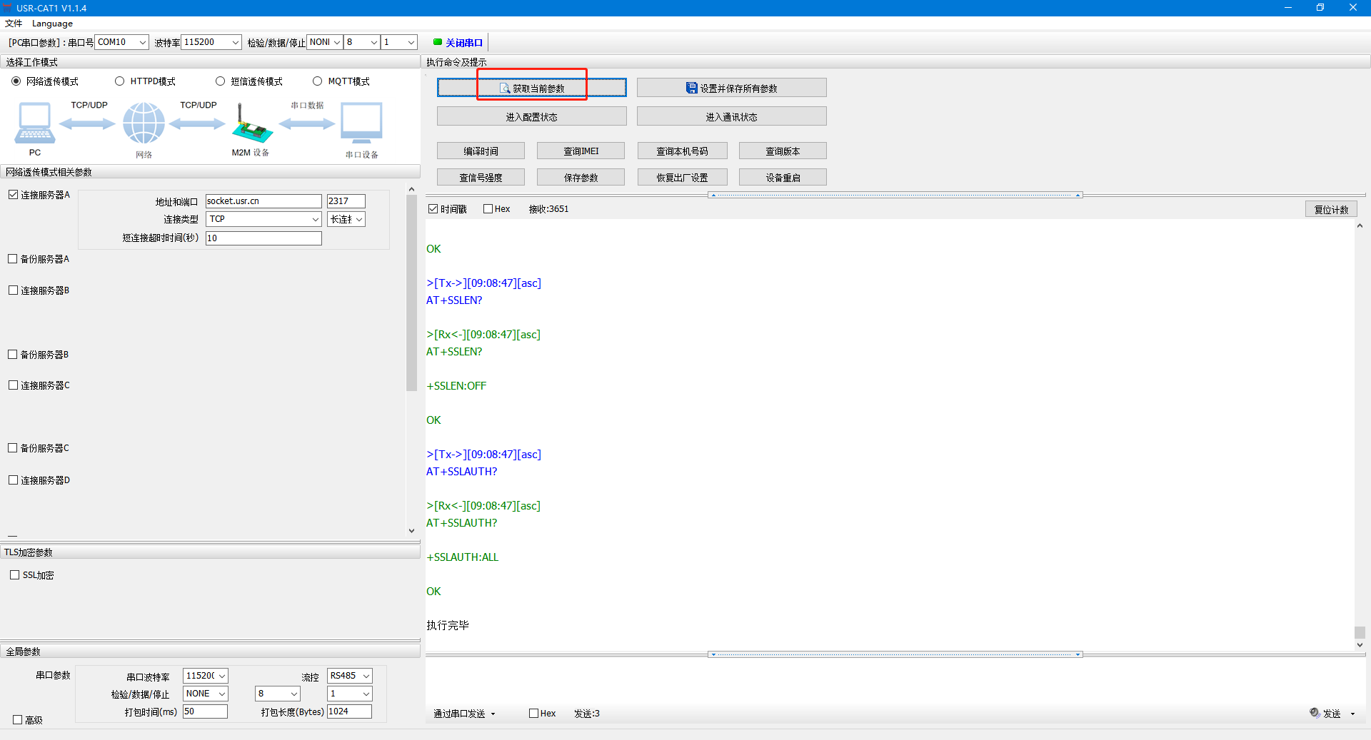 1、打開USR-DR154設(shè)置軟件USR-CAT1 V1.1.4.exe