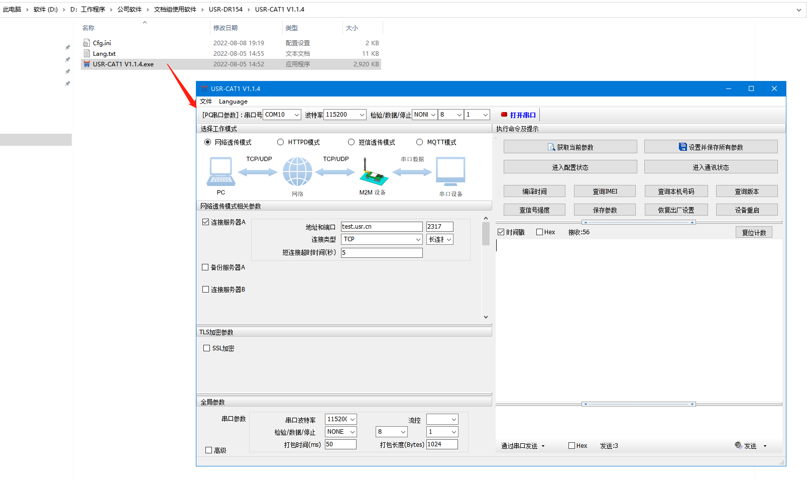1、打開USR-DR154設(shè)置軟件USR-CAT1 V1.1.4.exe