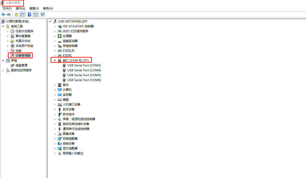 電腦鼠標(biāo)點(diǎn)擊計(jì)算機(jī)管理,右擊,點(diǎn)開設(shè)備管理器,點(diǎn)擊端口,查看接USR-DR152的USB-RS232串口線COM口號,COM3。
