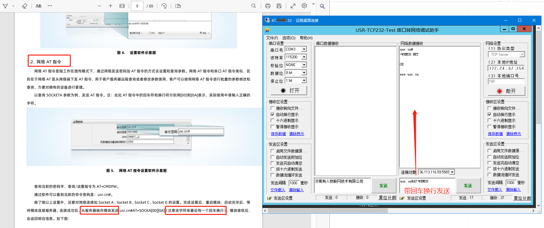 USR-DR152串口配置網(wǎng)絡(luò)AT指令使用示例
