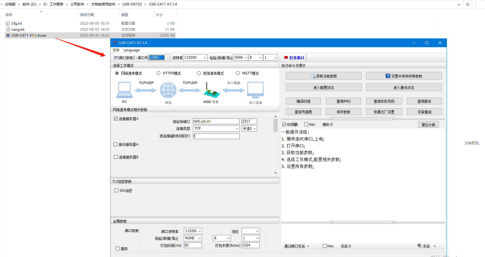 1、打開USR-DR152設(shè)置軟件USR-CAT1 V1.1.4.exe