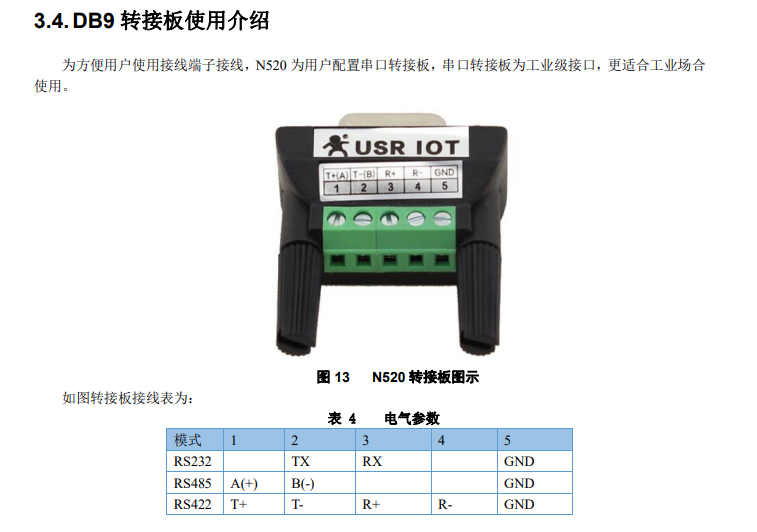 USR-DR152的GND接轉(zhuǎn)接板的5引腳GND