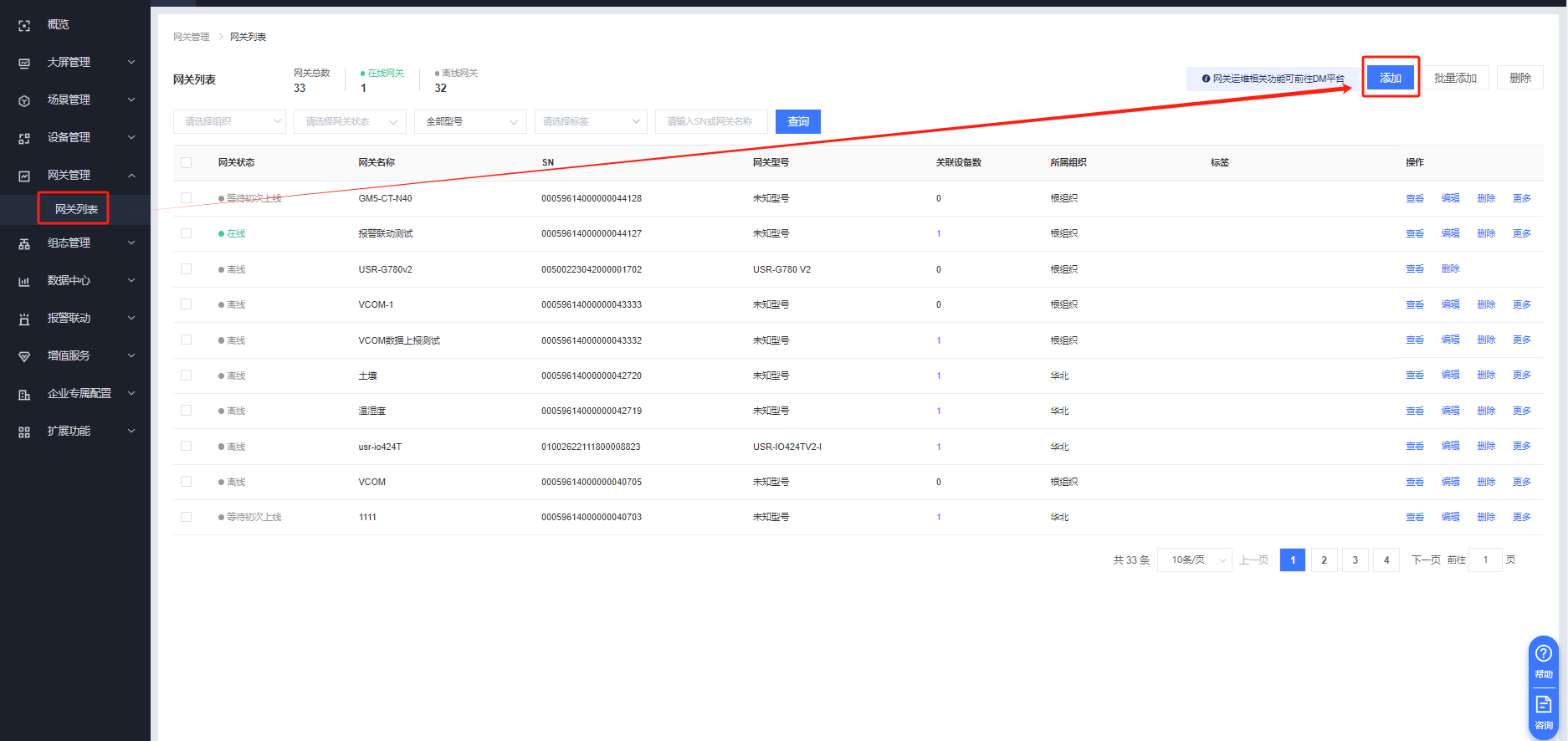 網(wǎng)關(guān)管理—網(wǎng)關(guān)列表—添加