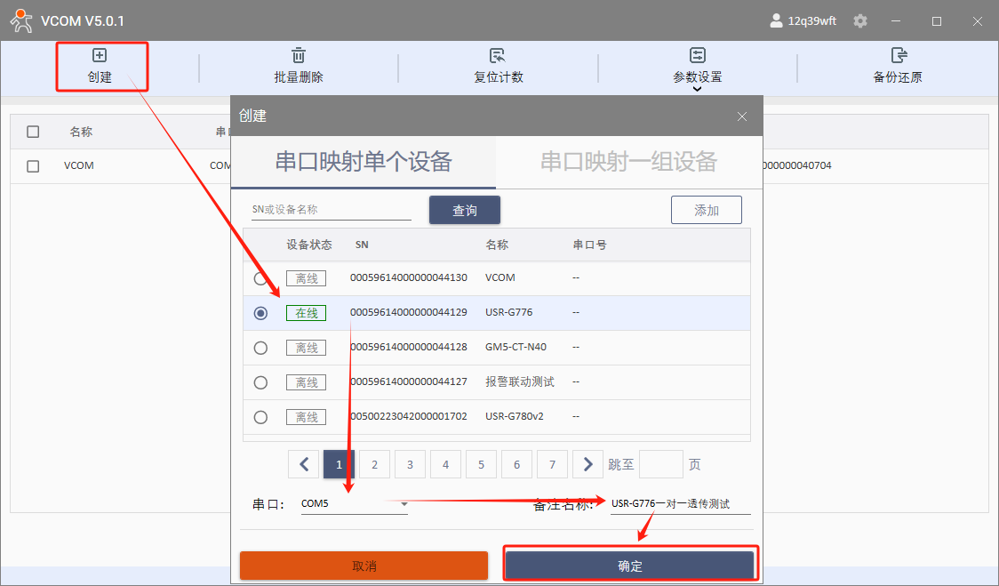 創(chuàng)建USR-G776和虛擬串口之間的透傳關(guān)系