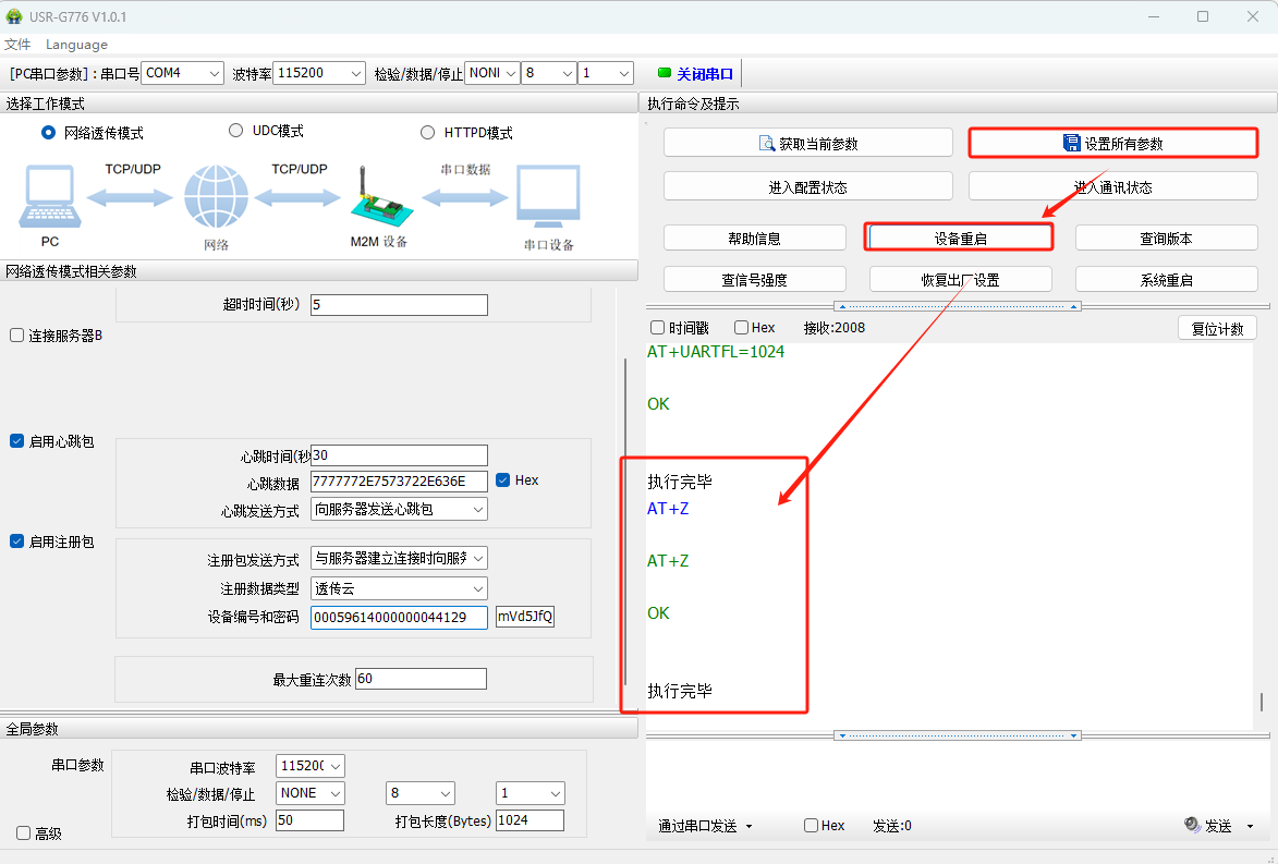保存并設(shè)置所有參數(shù),設(shè)備重啟