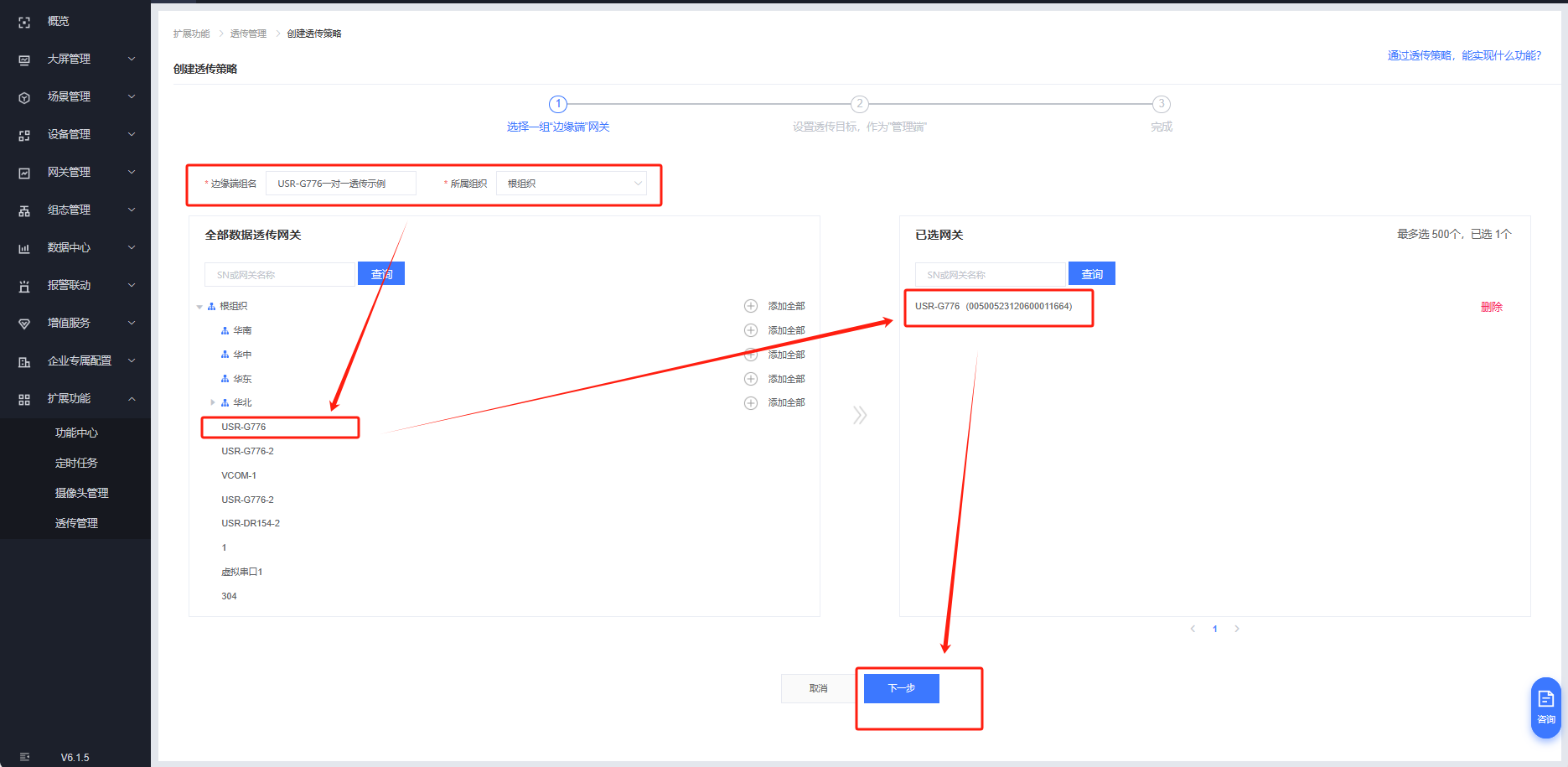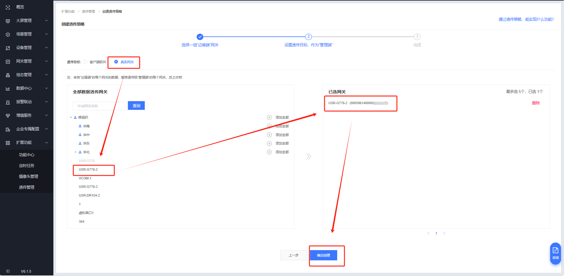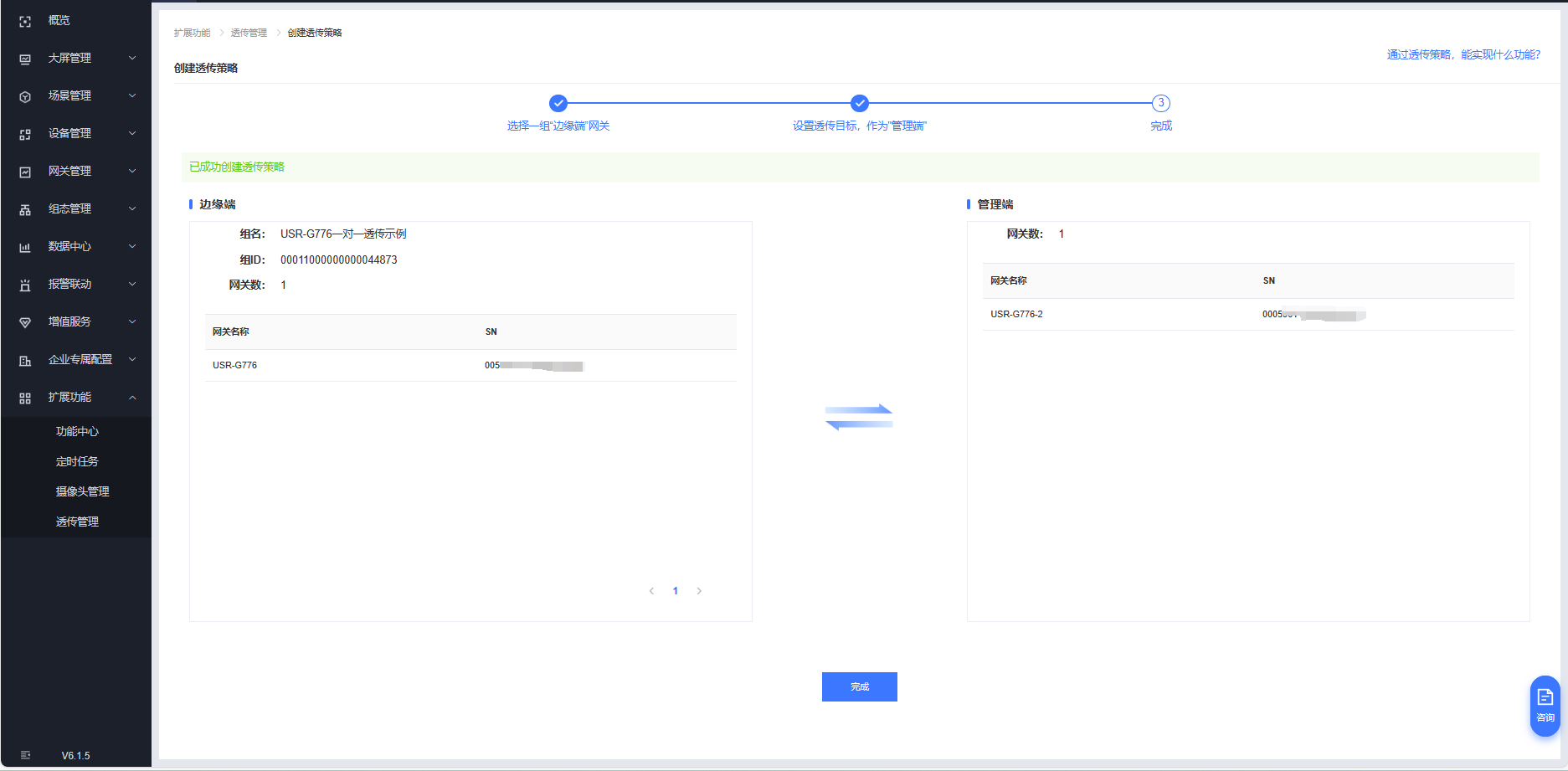 擴(kuò)展功能---透傳管理---創(chuàng)建透傳策略